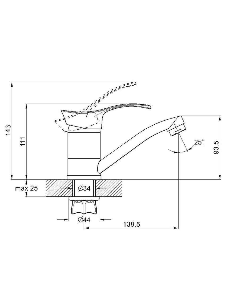 - Поворотный однорычажный механизм — быстрое регулирование температуры и напора, подходит для дома, дачи, гостевого санузла