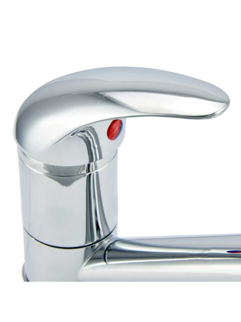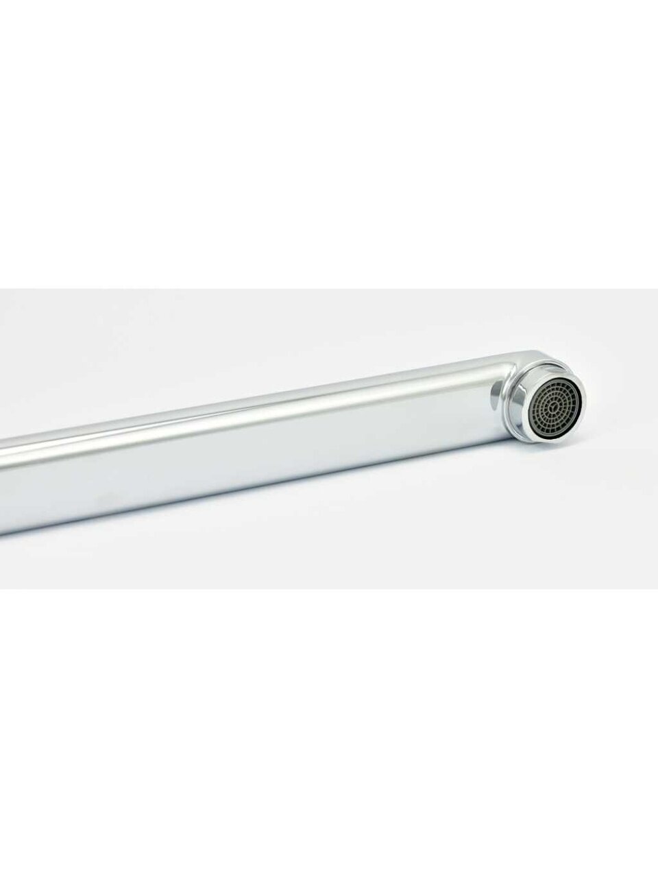 Средний поворотный излив длиной 22 см, форма плоская, высота оптимальна для стандартных кухонных раковин.