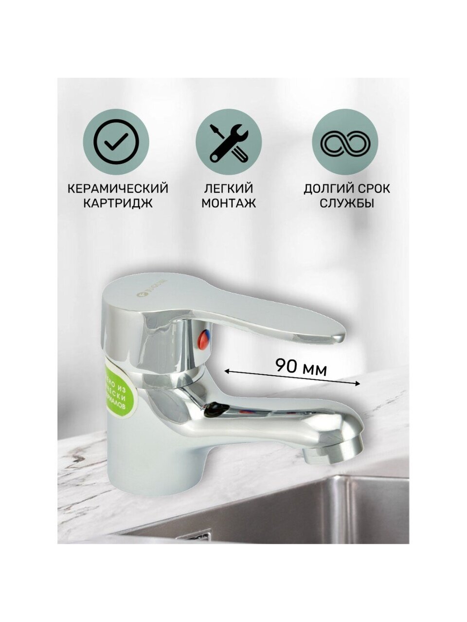 - Однорычажный смеситель с керамическим картриджем — плавное управление и минимальный риск протечек