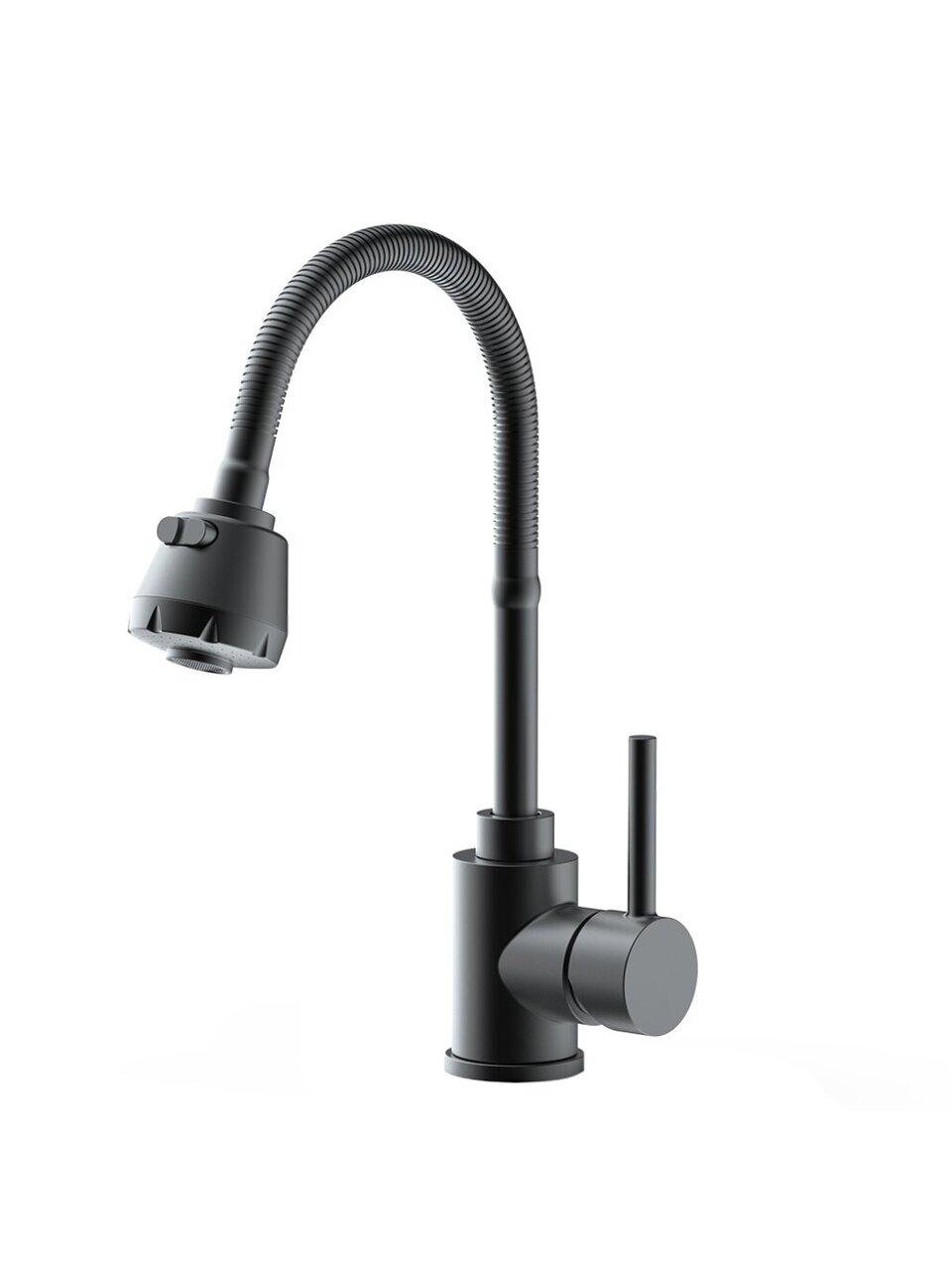 Смеситель для кухни Frap F40993-6 с гибким изливом — оптимальный выбор для тех, кто ищет сочетание функциональности и современного дизайна. Благодаря гибкой конструкции излива и длине 20,1 см, вы легко направите поток воды в нужное место, что особенно удобно при мытье крупной посуды или наполнении высоких емкостей. Матовый черный цвет и корпус из нержавеющей стали добавляют интерьеру стильный акцент, а однорычажное управление обеспечивает точную регулировку температуры и напора.