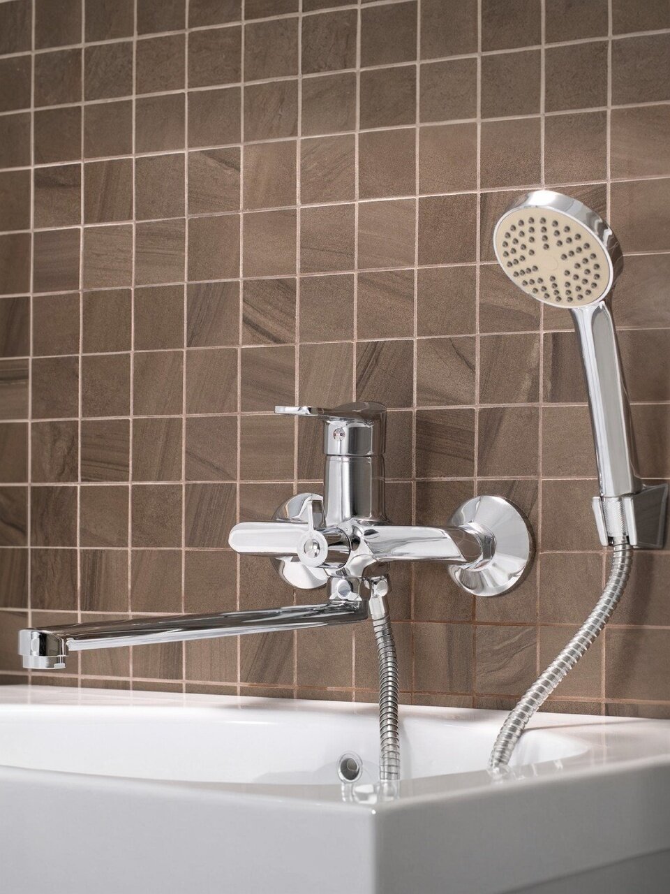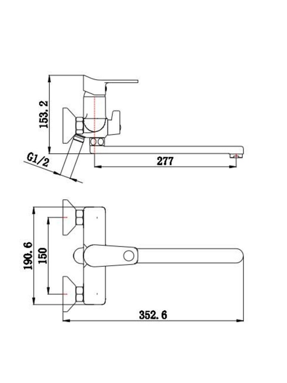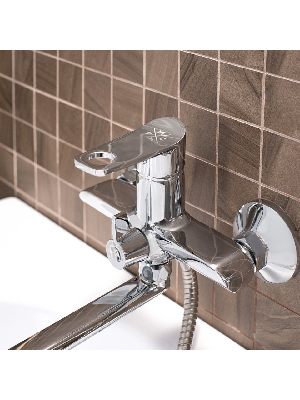 РМС SL137-006E — идеален для ванны с душем: длинный поворотный излив, удобный рычаг, в комплекте лейка и аэратор. Монтируется на стену через 2 отверстия, подходит для стандартного межосевого расстояния 150 мм.