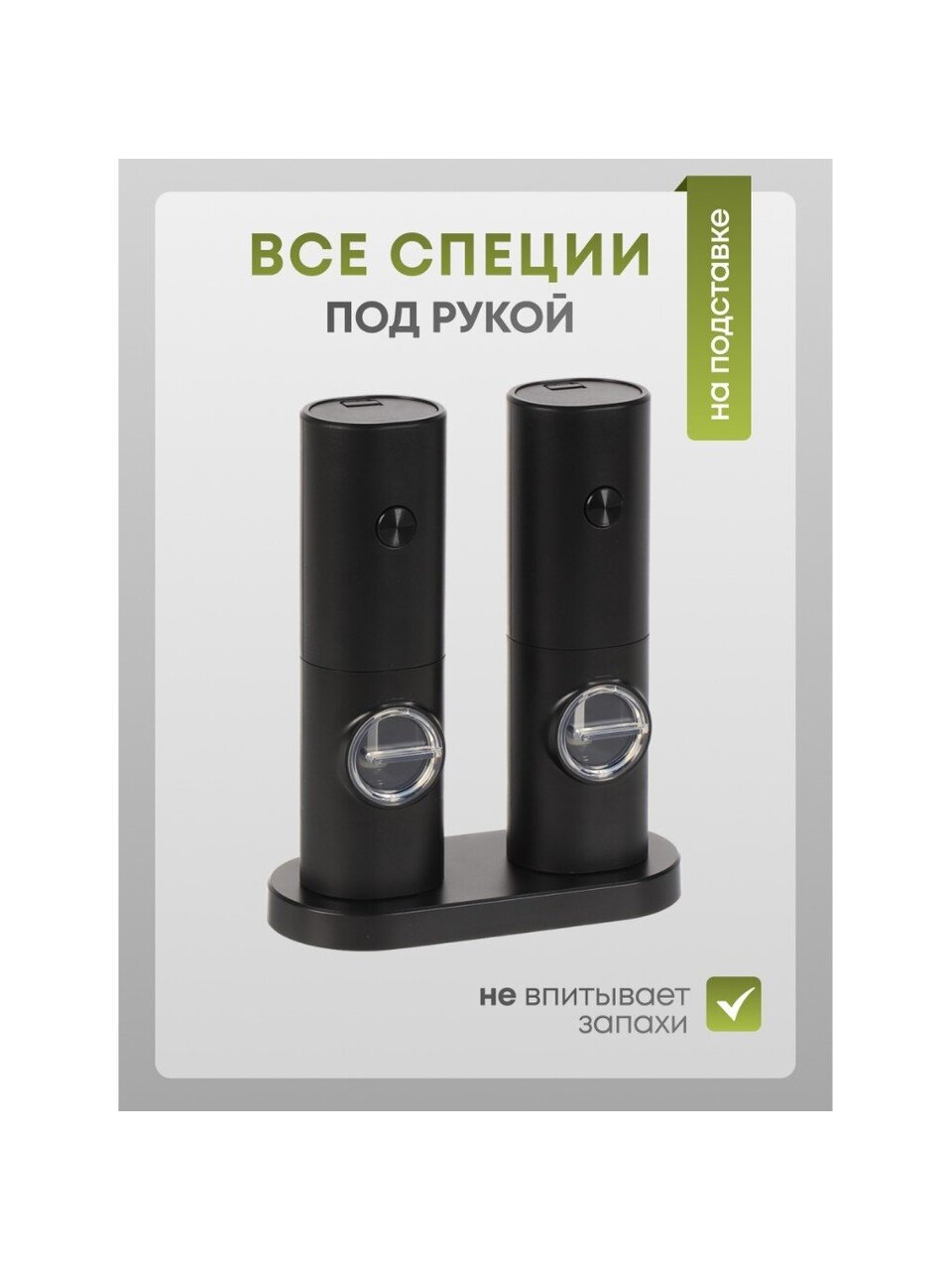 - Комплект из двух электрических мельниц создаст практичный и удобный тандем для вашей кухни, с ним можно добавлять сразу несколько свежих приправ в блюдо, делая его ароматным и аппетитным.