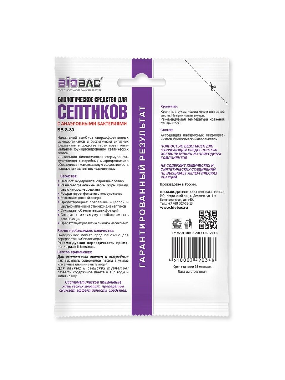 Биологическое средство для септиков BB S-80 - идеальный симбиоз сверхэффективных микроорганизмов и биологически активных ферментов, который гарантирует оптимальное функционирование септических систем.