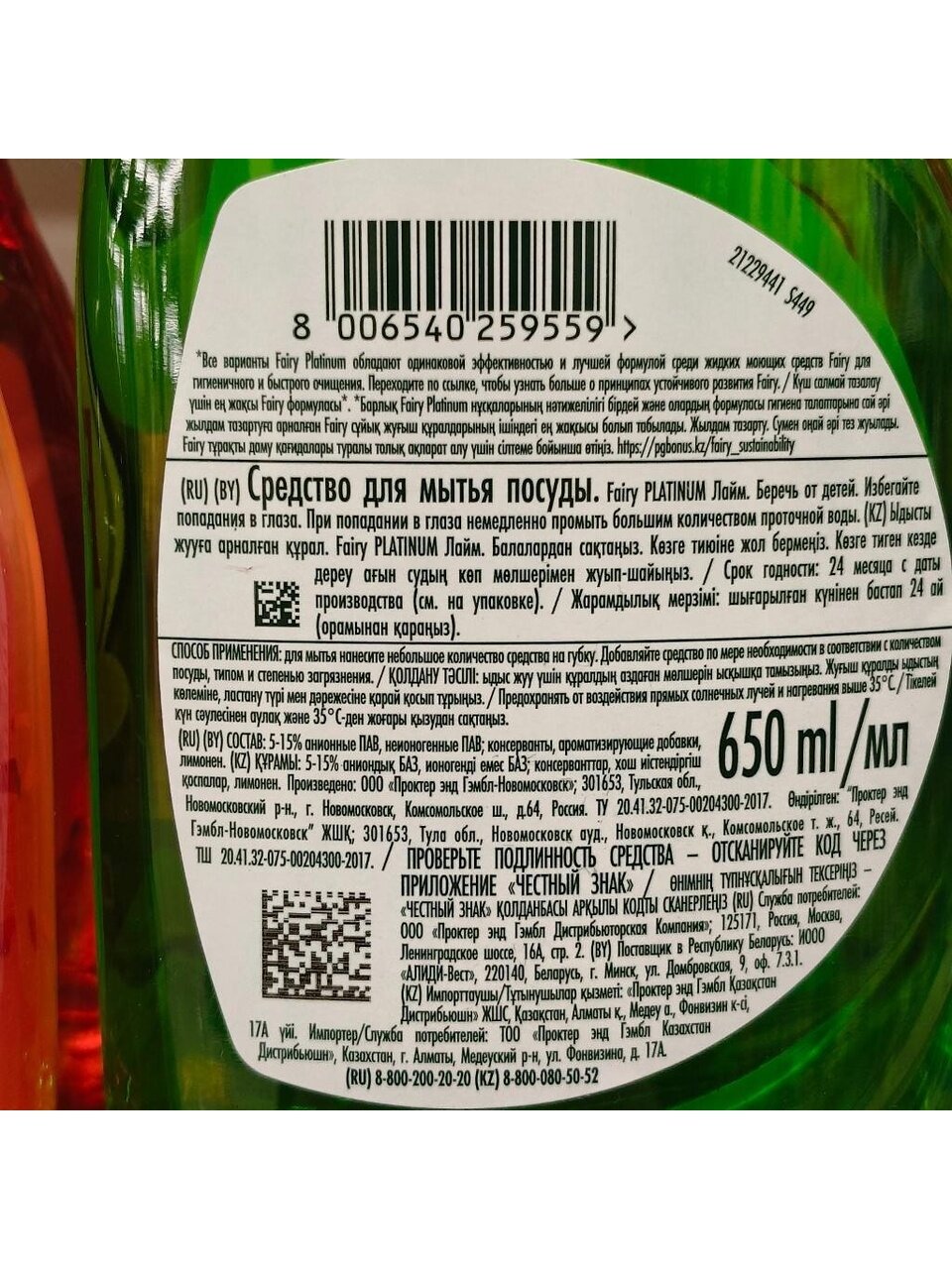 Вы можете приобрести «Средство для мытья посуды Fairy, Platinum Лимон и лайм, 650 мл» и другие товары в нашем интернет-магазине в Орле по низким ценам и с бесплатным самовывозом.