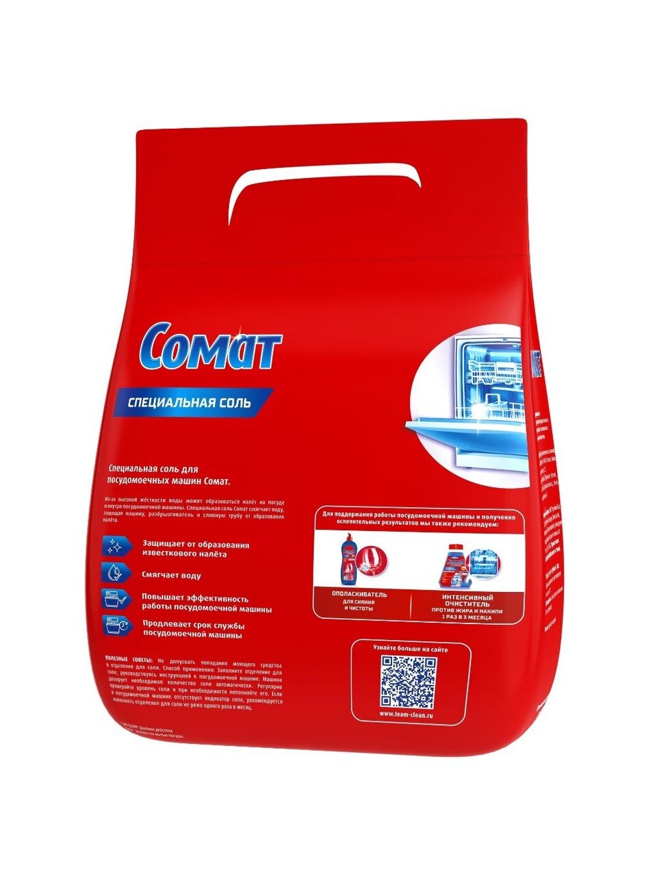 Специальная соль для посудомоечной машины Сомат смягчает воду, предотвращая образование известкового налета на разбрызгивателях и сливной трубе, тем самым соль для посудомойки продлевает срок службы Вашей посудомоечной машины. Откройте для себя 5 активных действий специальной соли для посудомоечной машины Сомат: