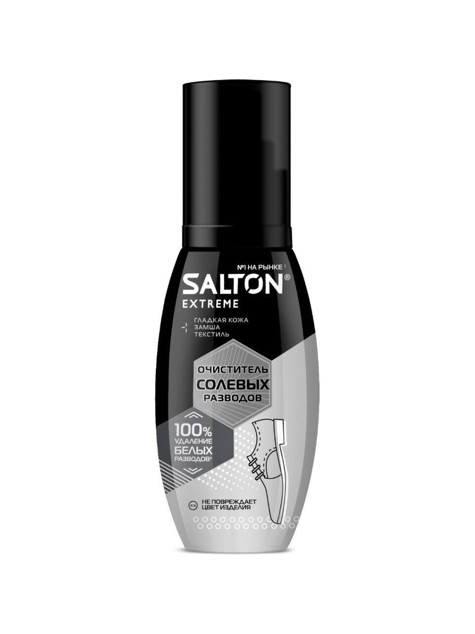 - Уникальная формула эффективно удаляет соль и дорожные реагенты, предотвращая появление белых пятен на обуви