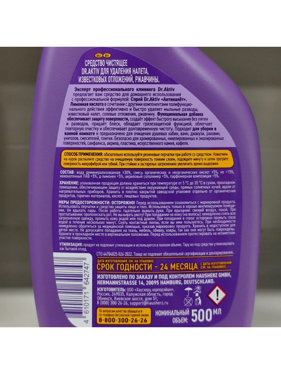 Вы можете приобрести «Чистящее средство для ванной, Dr.Aktiv, Антиналет, спрей, 500 мл» и другие товары в нашем интернет-магазине в Нижнем Новгороде по низким ценам и с бесплатным самовывозом.