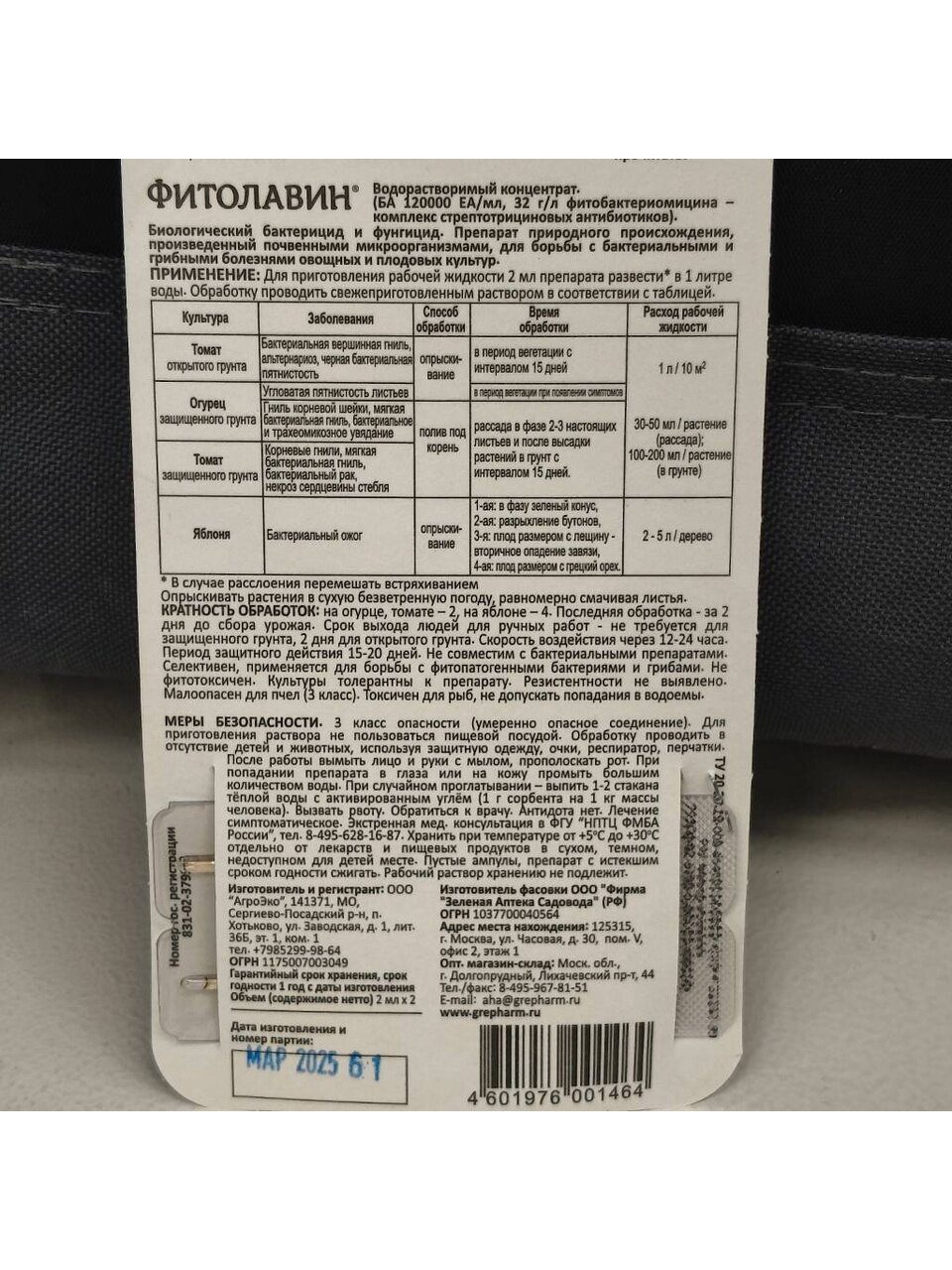 Вы можете приобрести «Фунгицид Фитолавин, от бактериальных и грибковых заболеваний, 2 мл, 2 шт, Зеленая аптека Садовода» и другие товары в нашем интернет-магазине в Тамбове по низким ценам и с бесплатным самовывозом.