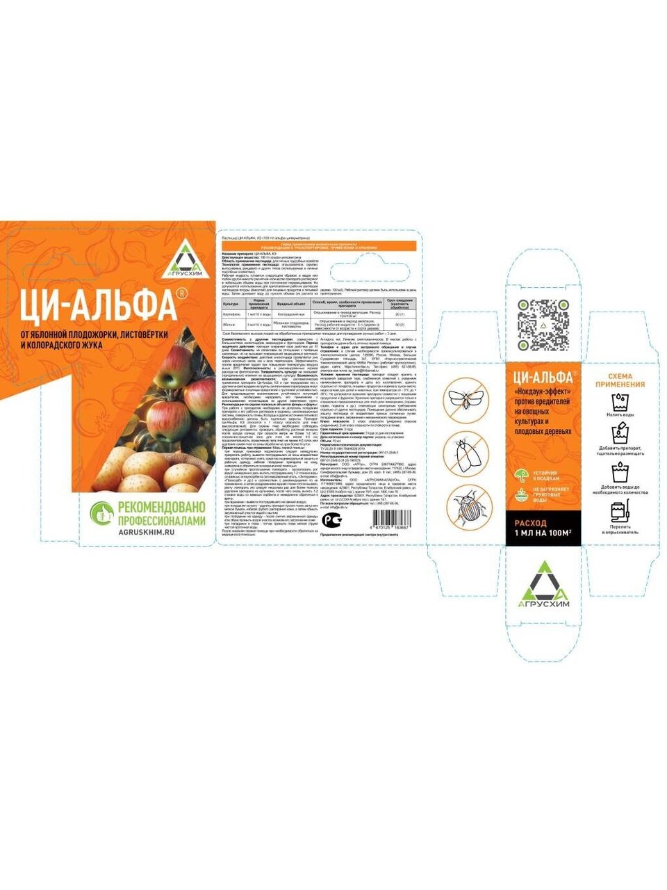 Ци-Альфа ингибирует процессы деполяризации натриевых потенциал-зависимых каналов, что приводит к гипервозбудимости (нокдаун-эффект) и гибели насекомых. Препарат защищает широкий спектр сельскохозяйственных культур. Возможно применение в личных подсобных хозяйствах для уничтожения вредителей на картофеле и яблоне. Имеет длительный период защитного действия, что позволяет ограничиться одной обработкой за сезон.