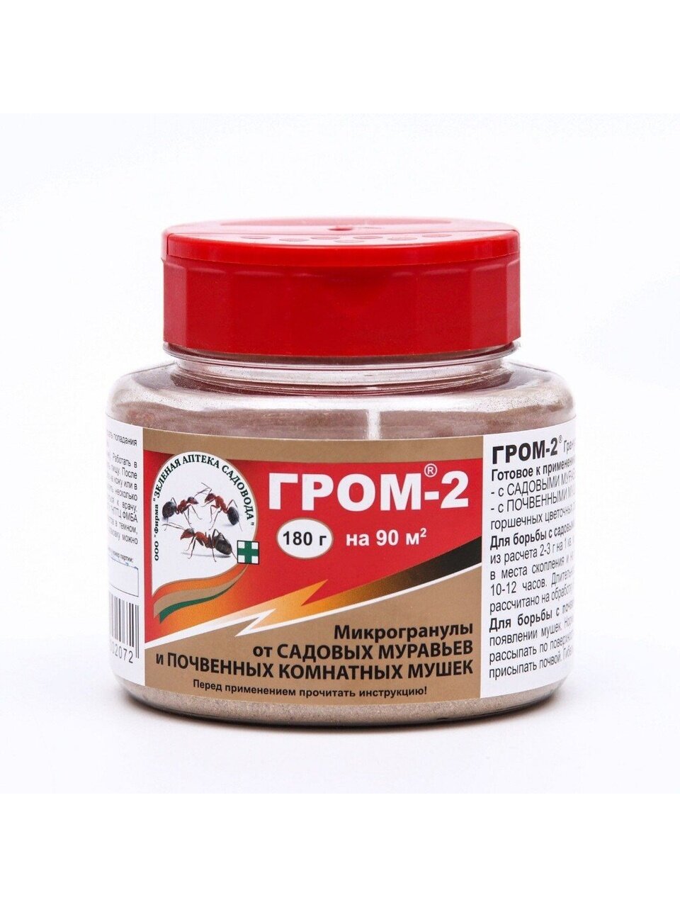 Гранулированный препарат Гром-2М предназначен для уничтожения муравьев на грядках, в цветниках, под деревьями, в отмостках домов, а так же направлен против почвенных мушек на рассаде и комнатных цветах.
