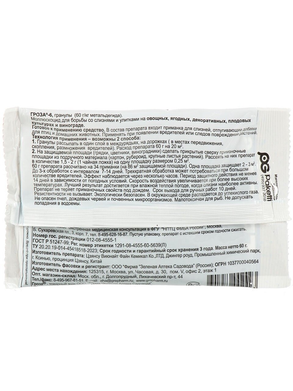 Вы можете приобрести «Инсектицид Гроза-6, от улиток и слизней, гранулы, 60 г, Зеленая аптека Садовода» и другие товары в нашем интернет-магазине в Серпухове по низким ценам и с бесплатным самовывозом.