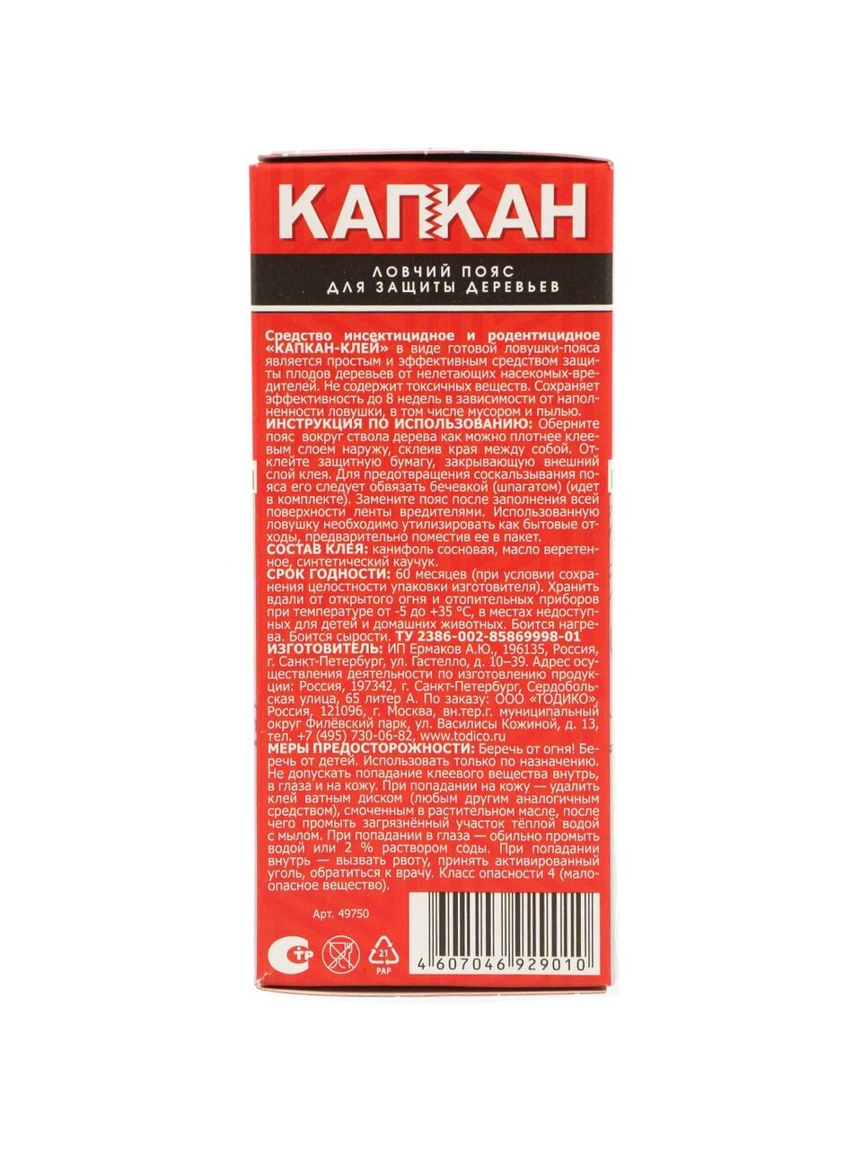 Инсектицид Ловчий пояс Капкан — эффективное решение для защиты садовых деревьев от насекомых-вредителей. Клеевая ловушка длиной 1 м предназначена для борьбы с гусеницами и муравьями. Средство легко использовать, подходит для дачного и приусадебного участка. Благодаря надежной фиксации вредители не смогут подняться по стволу. Покупка ловчего пояса поможет сохранить урожай и здоровье деревьев без химии.