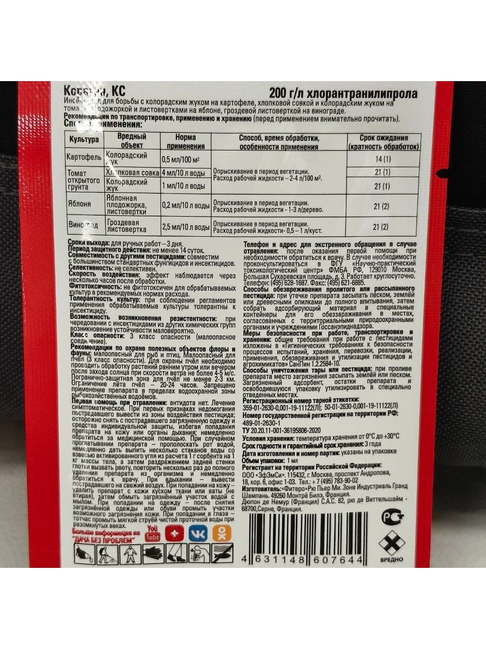 Это оригинальный инсектицид нового поколения с уникальным механизмом действия и высокой эффективностью против комплекса вредителей на картофеле, томате, винограде и яблоне.