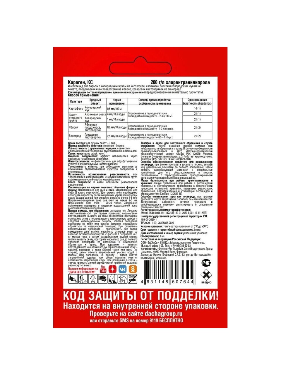 Вы можете приобрести «Инсектицид Кораген, от колорадского жука, жидкость, 1 мл, Expert Garden» и другие товары в нашем интернет-магазине в Смоленске по низким ценам и с бесплатным самовывозом.