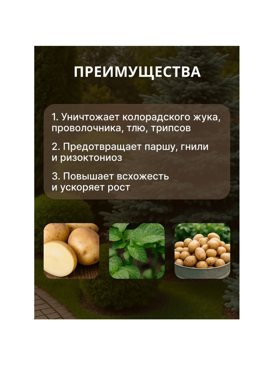- Специально разработанная формуляция для обработки картофеля.