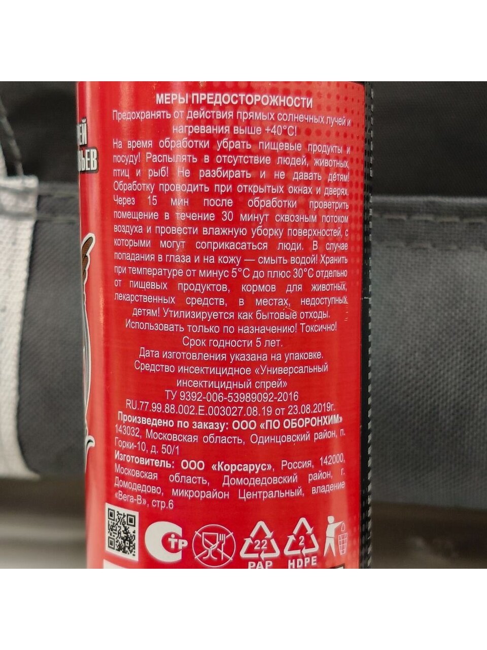 Спрей предназначен для уничтожения в помещениях нелетающих и летающих насекомых (тараканов, постельных клопов, блох, муравьев, сверчков, кожеедов, бабочек моли и мух).