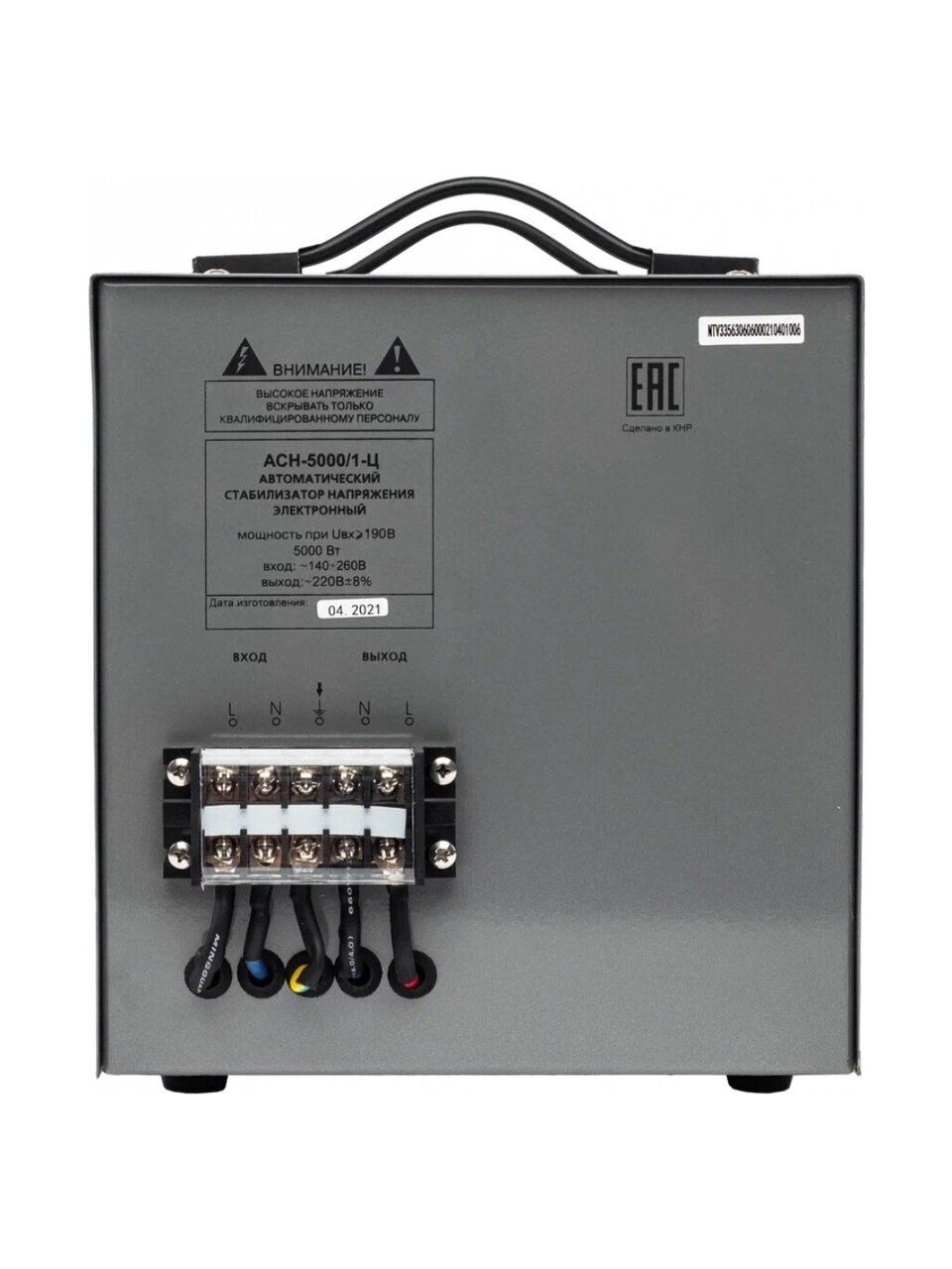 - Металлический корпус однофазного стабилизатора напряжения Ресанта АСН 5000/1-Ц защищает внутренние узлы от механических повреждений.