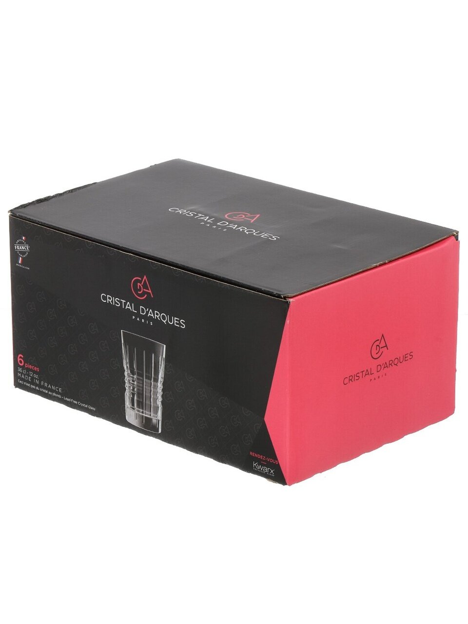 Стаканы 360 мл Cristal D'Arques Rendez-Vous — набор из 6 стильных гранёных бокалов для воды и напитков. Французское качество, универсальность для дома, дачи и подарка.