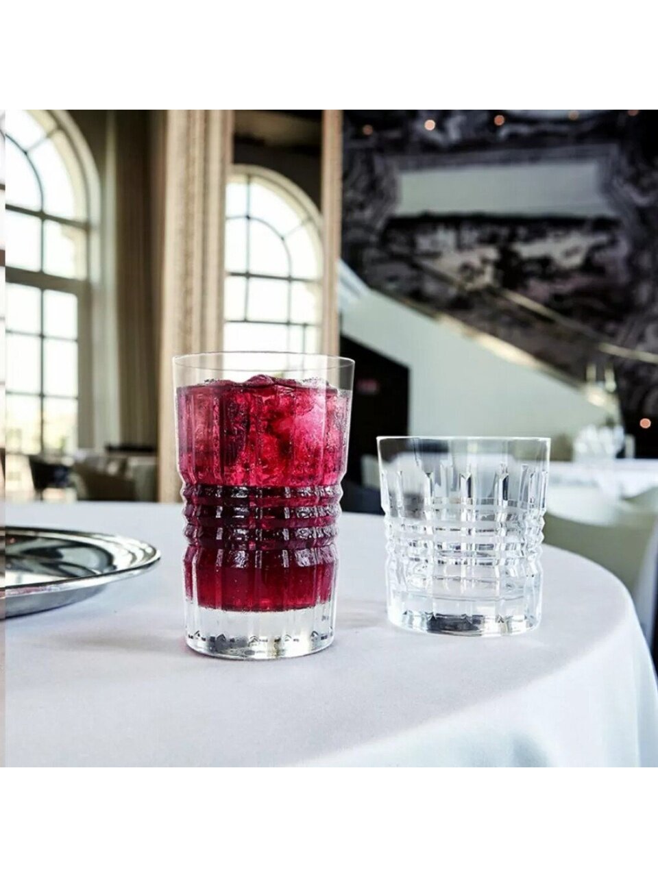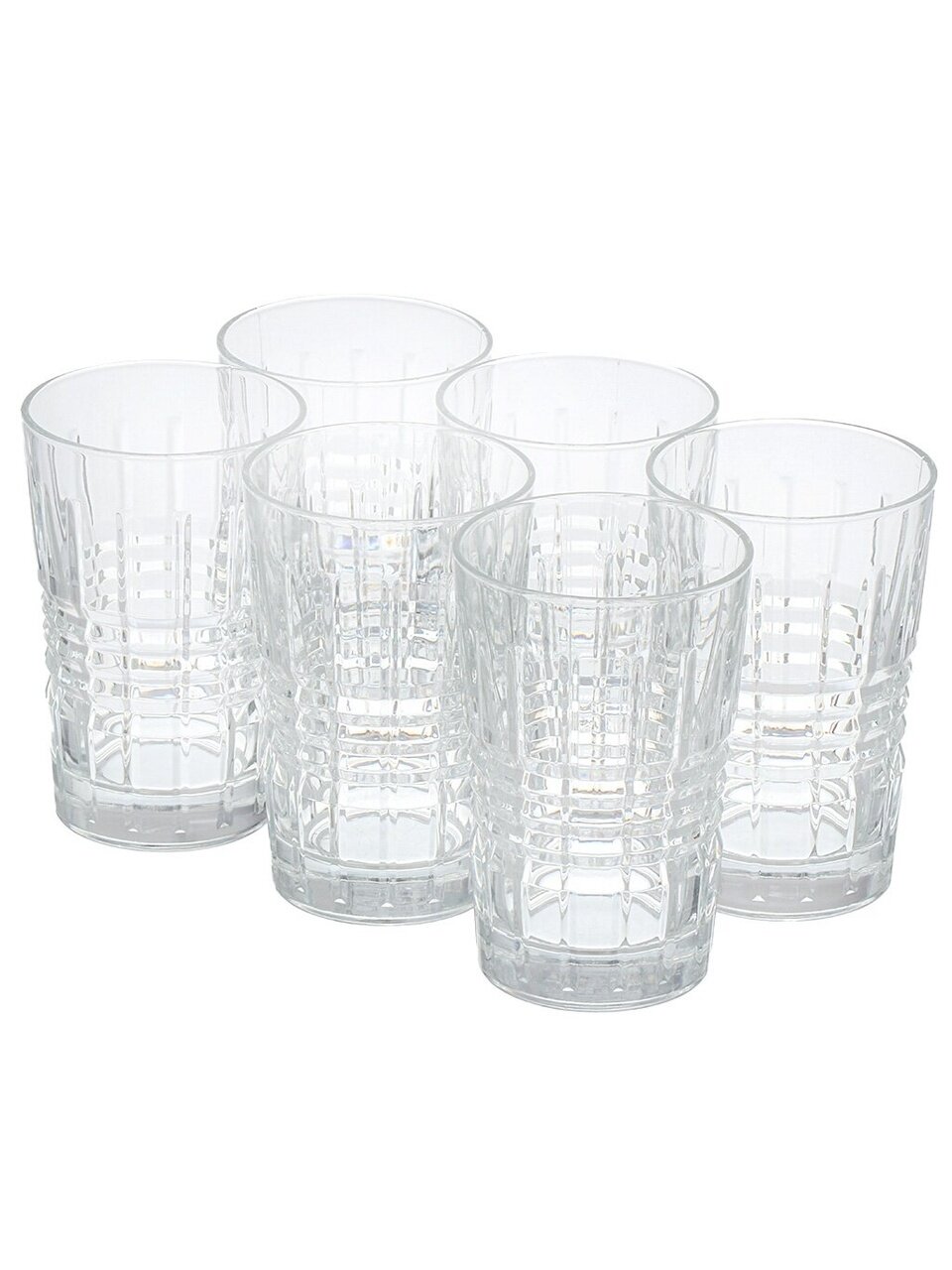 В наборе 6 стеклянных стаканов объёмом 360 мл, с высокой формой «коллинз» и гранёной поверхностью. Размер оптимален для сервировки и ежедневного использования.