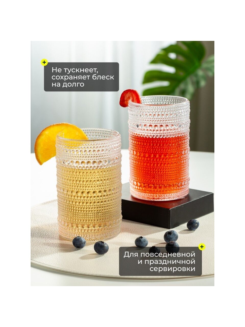- Объем 360 мл и прочное стекло — оптимальный размер для воды, сока, лимонада, долгий срок службы