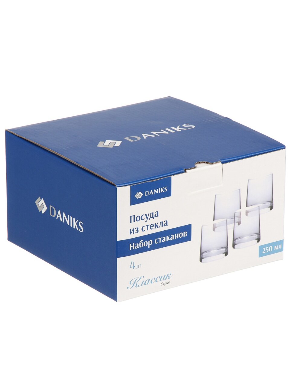 Стаканы 250 мл Daniks Классик: набор 4 шт из прочного стекла для дома, дачи, подарка. Универсальное решение — удобно, выгодно, долговечно.
