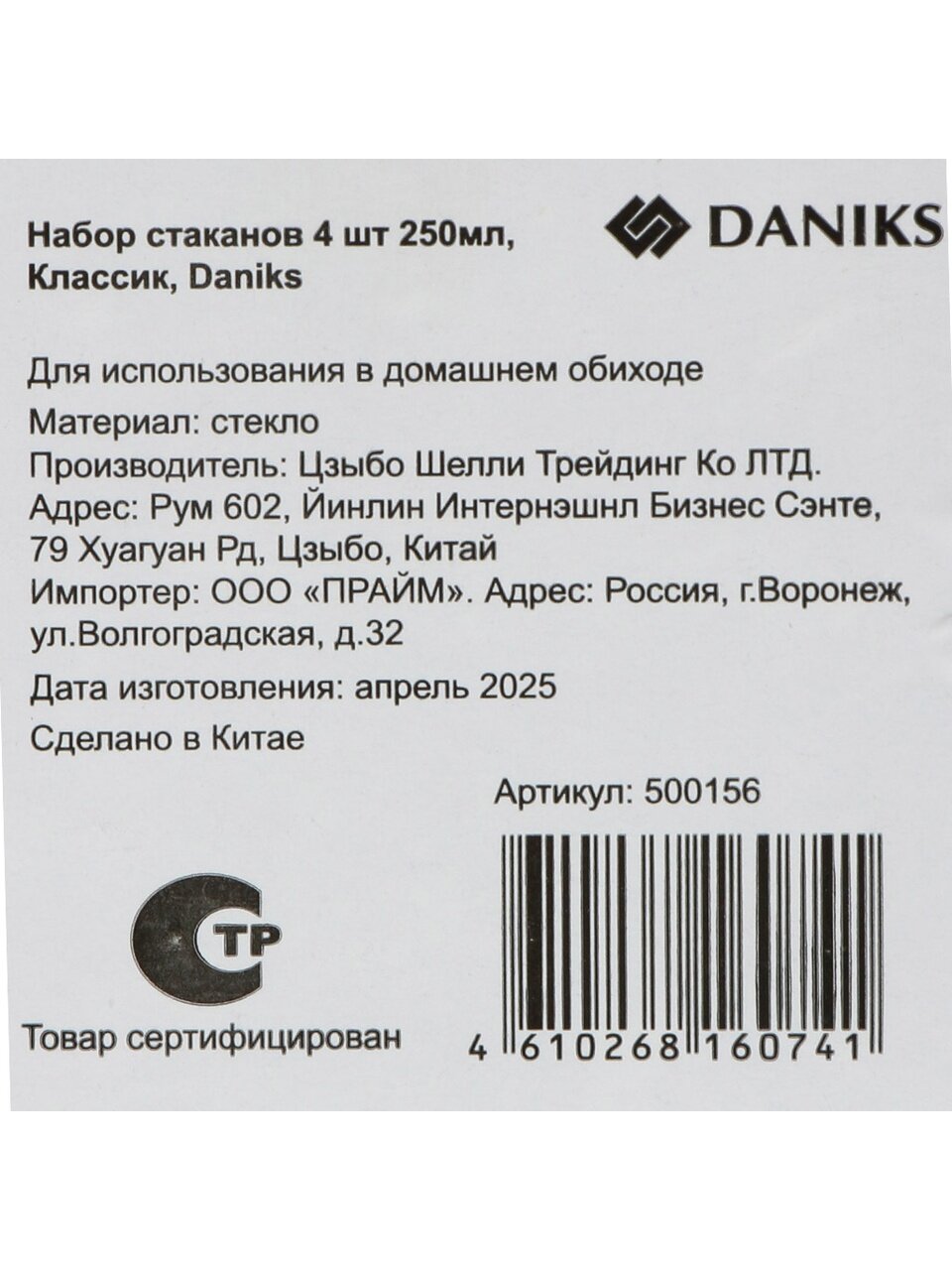 Вы можете приобрести «Стакан 250 мл, стекло, 4 шт, Daniks, Классик» и другие товары в нашем интернет-магазине в Обнинске по низким ценам и с бесплатным самовывозом.