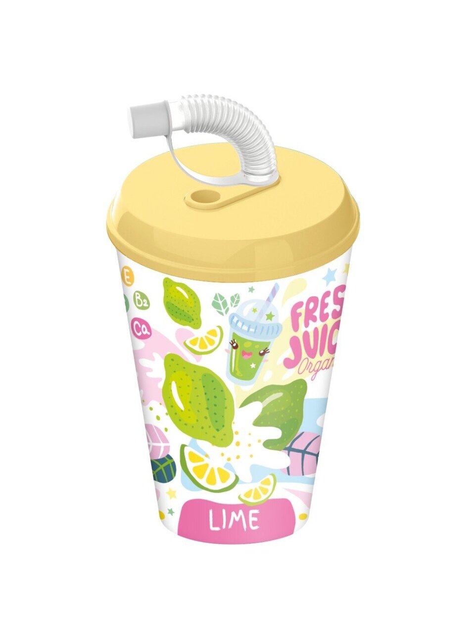 Стильный пластиковый стакан Homver Fresh Juice 420 мл с крышкой и трубочкой: удобно брать с собой, подходит для воды, сока и лимонада, в ассортименте цветов.