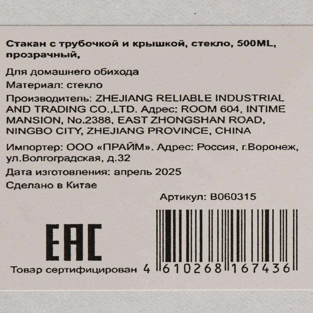 Вы можете приобрести «Стакан для напитков 500 мл, стекло, с трубочкой, с крышкой, прозрачный, B060315» и другие товары в нашем интернет-магазине в Обнинске по низким ценам и с бесплатным самовывозом.