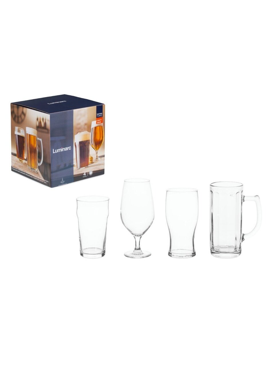 Стаканы Luminarc для крафтового пива (4 шт): стильный набор для дегустаций дома и на даче, износостойкое стекло, идеальный подарок ценителю вкуса.