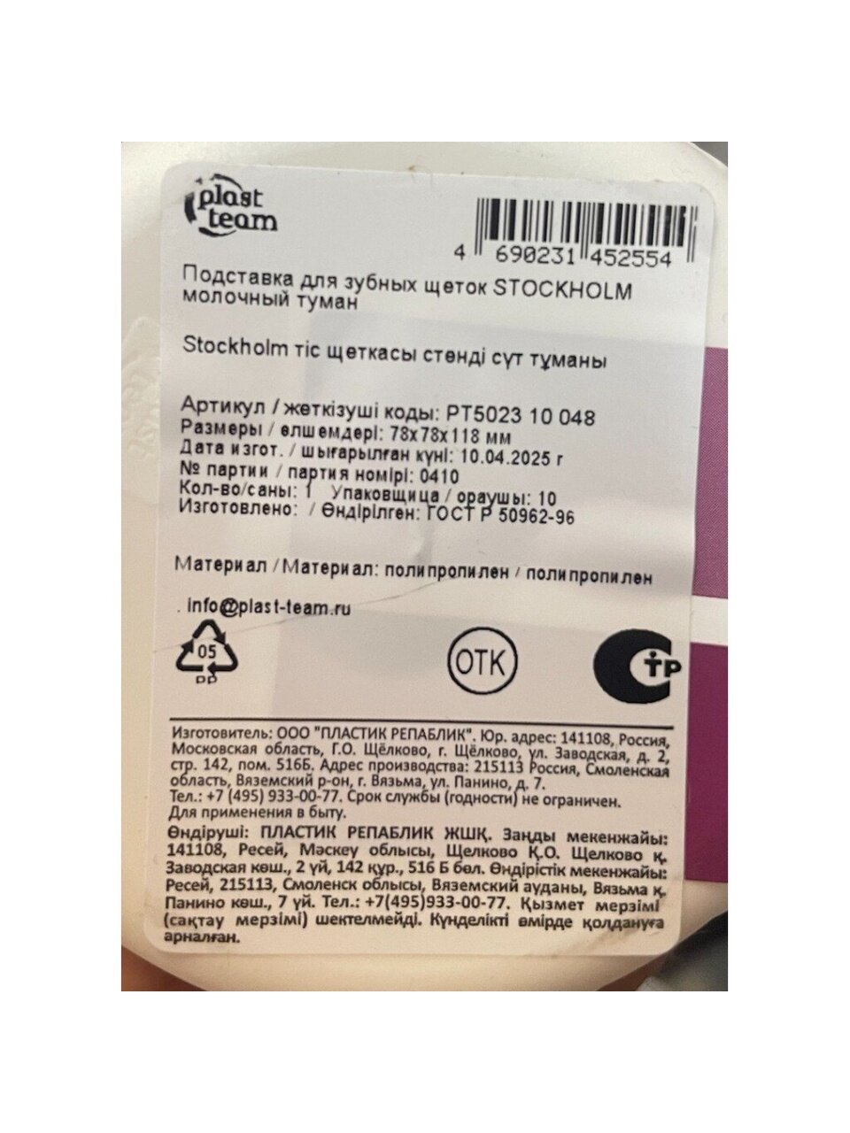 Стакан для зубных щеток Plast team Stockholm в цвете молочный туман — стильное и современное решение для ванной комнаты. Компактные размеры 7.8х7.8х11.8 см позволяют удобно разместить аксессуар на полке или раковине. Матовый пластик легко впишется в любой интерьер, а круглая форма добавит уюта.