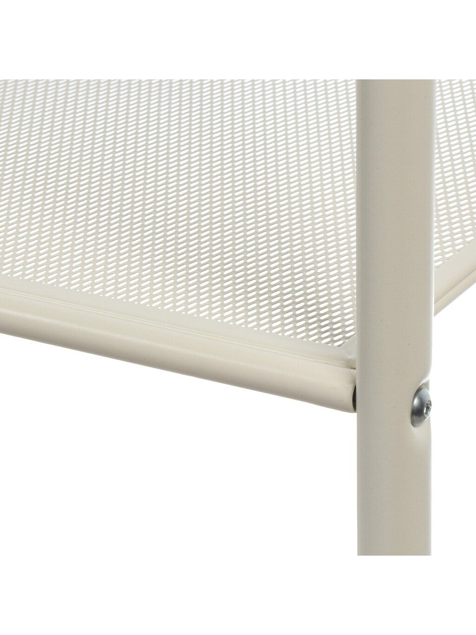 - Система хранения состоит из пяти металлических сетчатых полок, каждая из которых способна выдерживать вес до восьми килограммов.