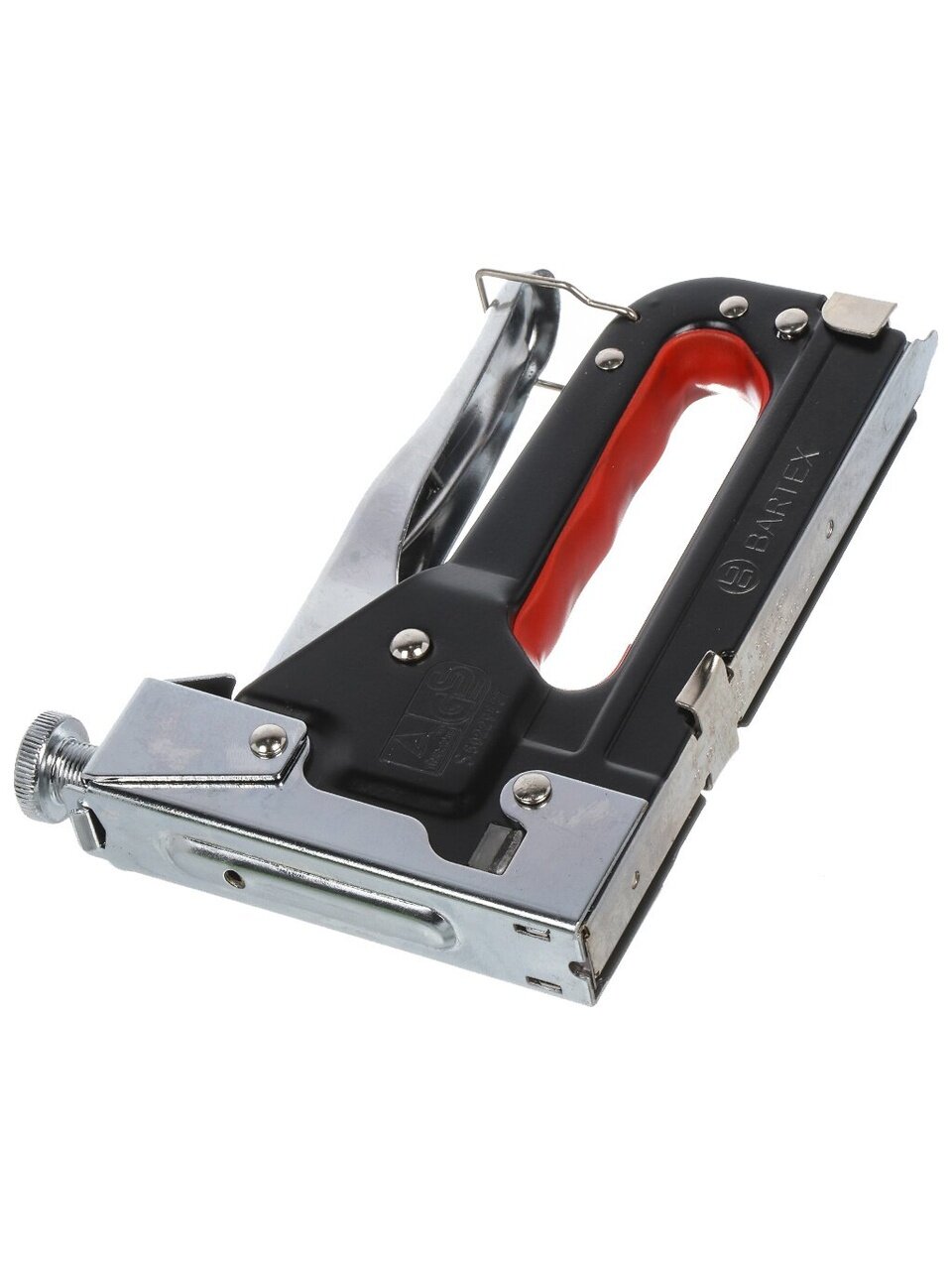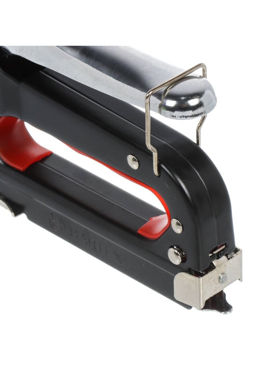 Степлер мебельный Bartex изготовлен из прочного металла. Он имеет плавную регулировку силы удара, что позволяет работать с материалами различной твердости.