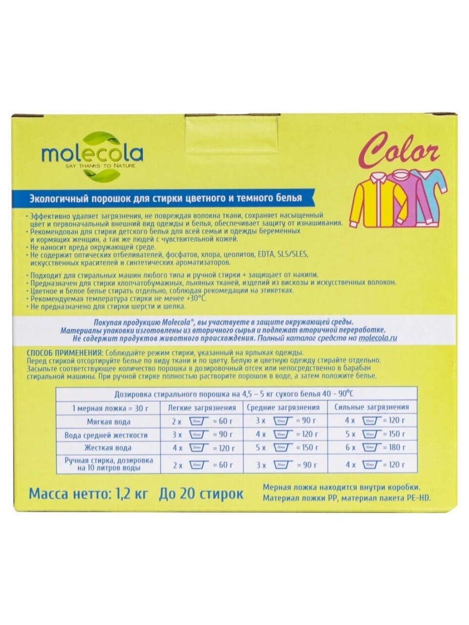 Ищете идеальный способ сохранить яркость и свежесть вашего цветного белья? Стиральный порошок Molecola, 1.2 кг, разработан специально для цветных тканей, обеспечивая бережное очищение и длительное сохранение цвета.