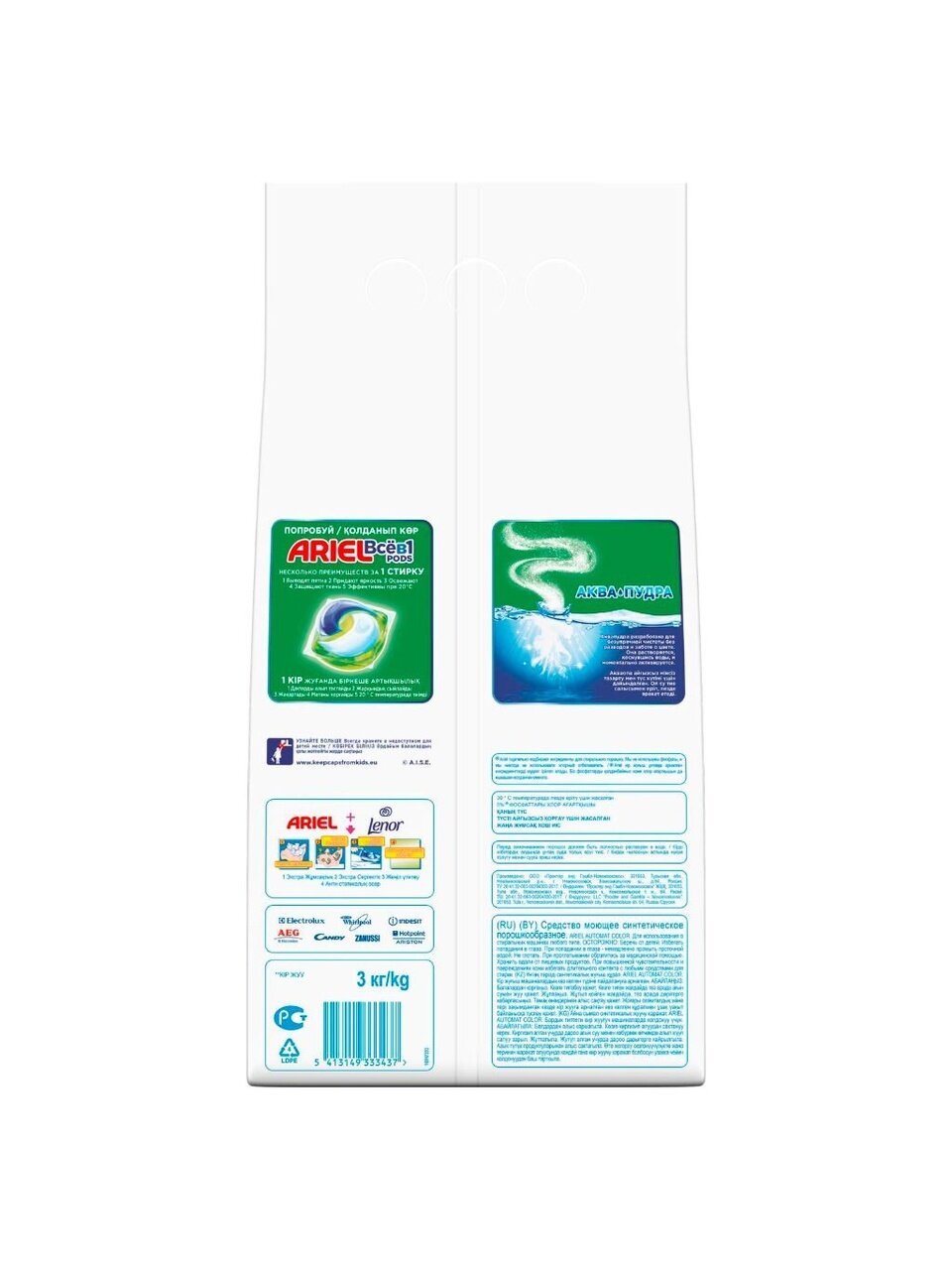 Порошок для стирки Ariel Аквапудра Color для цветных тканей превосходно и бережно отстирывает загрязнения на одежде даже в холодной воде и дарит белью приятный аромат свежести.