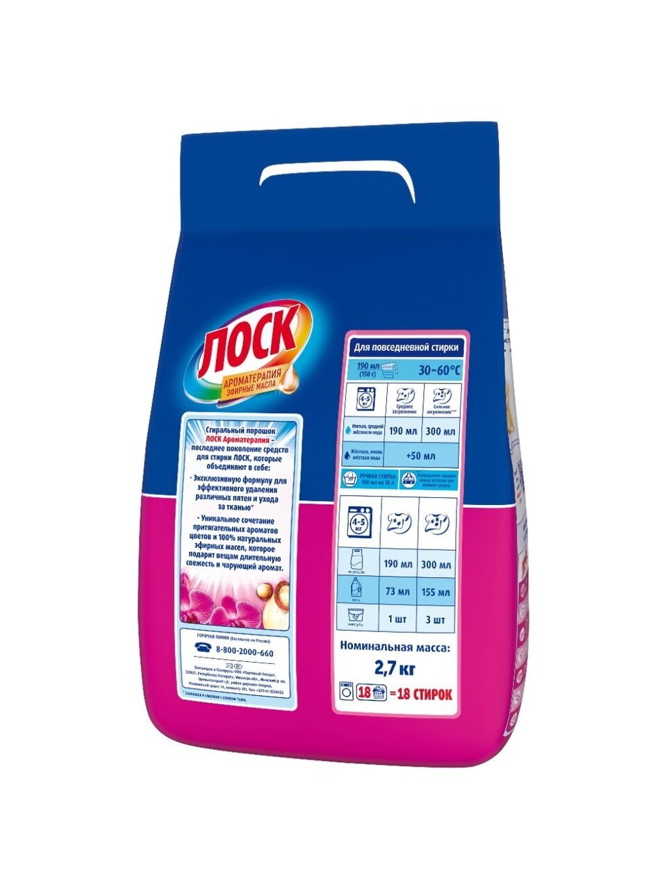 Стиральные порошки Лоск Ароматерапия Орхидея и Масло Макадамии – последнее поколение средств для стирки Лоск, которые подходят для стирки белых и цветных вещей.