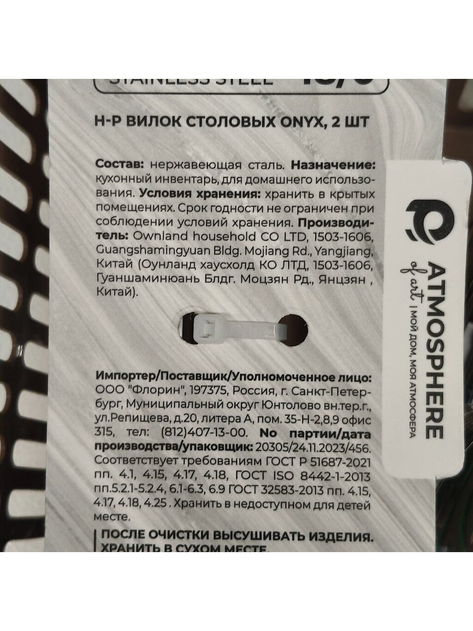 Вилка нержавеющая сталь Atmosphere Onyx, 2 шт — стильный столовый набор для дома и дачи. Прочный металл, современный дизайн, подходит для посудомоечной машины.