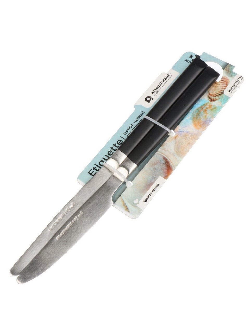 Набор столовых ножей Atmosphere Etiquette (2 шт., 22 см, нержавеющая сталь, чёрная ручка) — стиль и практичность для сервировки дома и дачи. Долговечность и удобство по доступной цене.