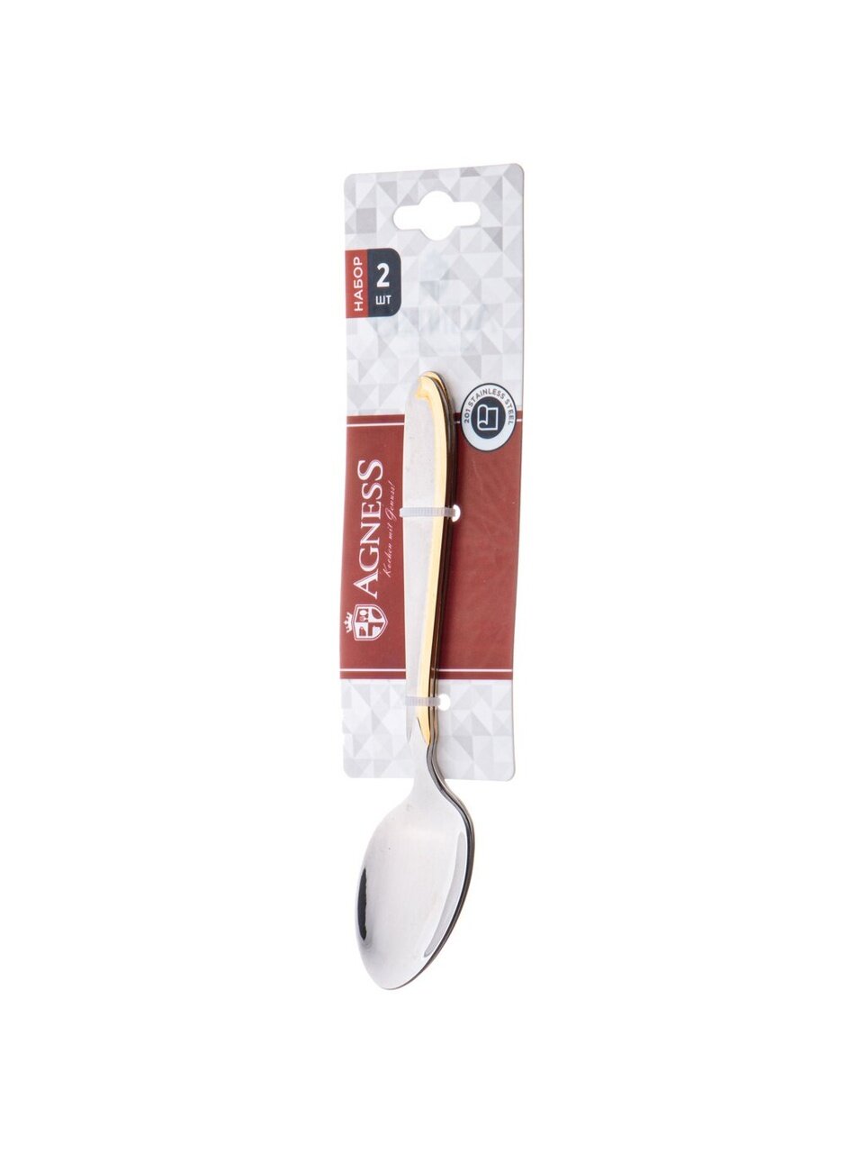 Ложки Agness из нержавеющей стали: стильный набор 2 шт. для чая и кофе — долговечность, универсальность, идеальный подарок на 8 марта и 23 февраля.