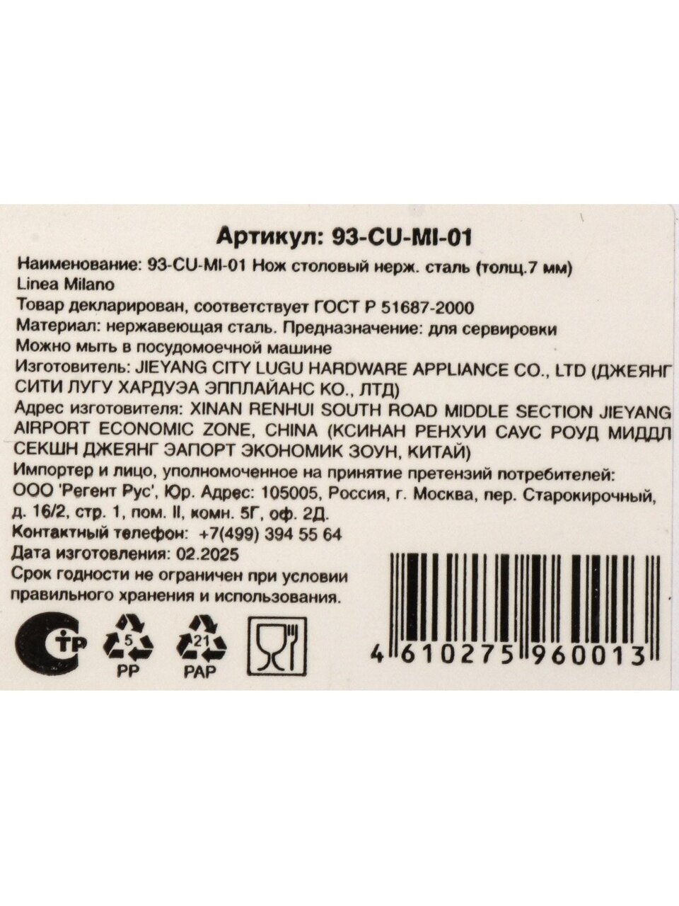Вы можете приобрести «Нож нержавеющая сталь, столовый, Regent Inox, Linea Milano, 93-CU-MI-01» и другие товары в нашем интернет-магазине в Брянске по низким ценам и с бесплатным самовывозом.