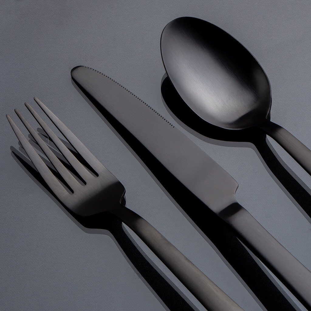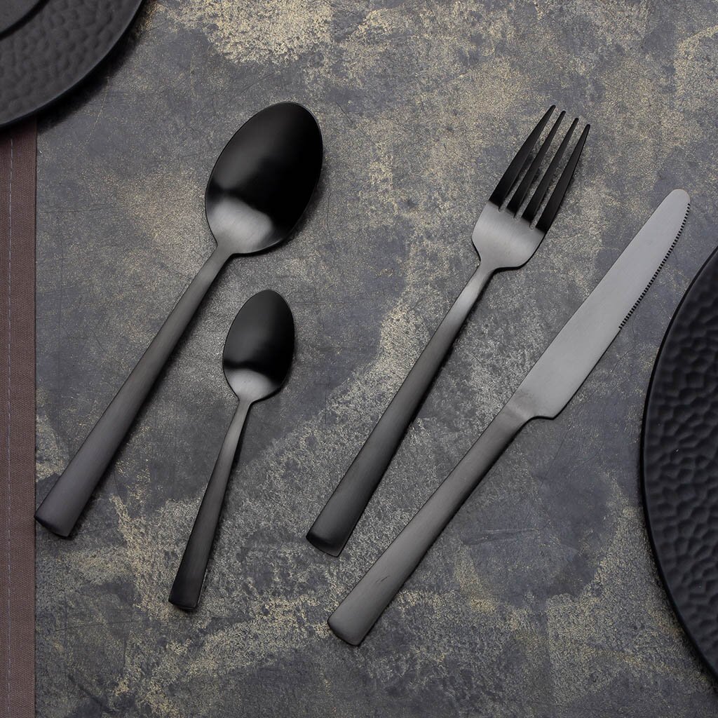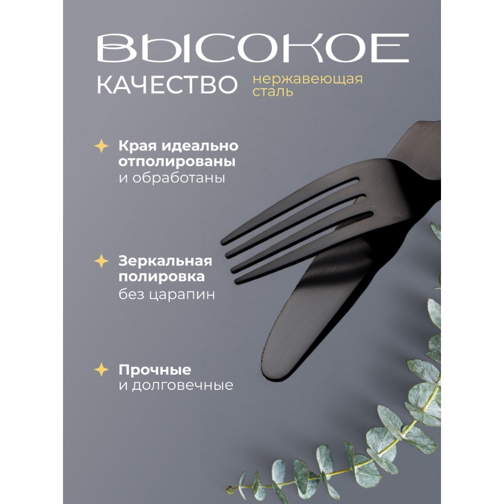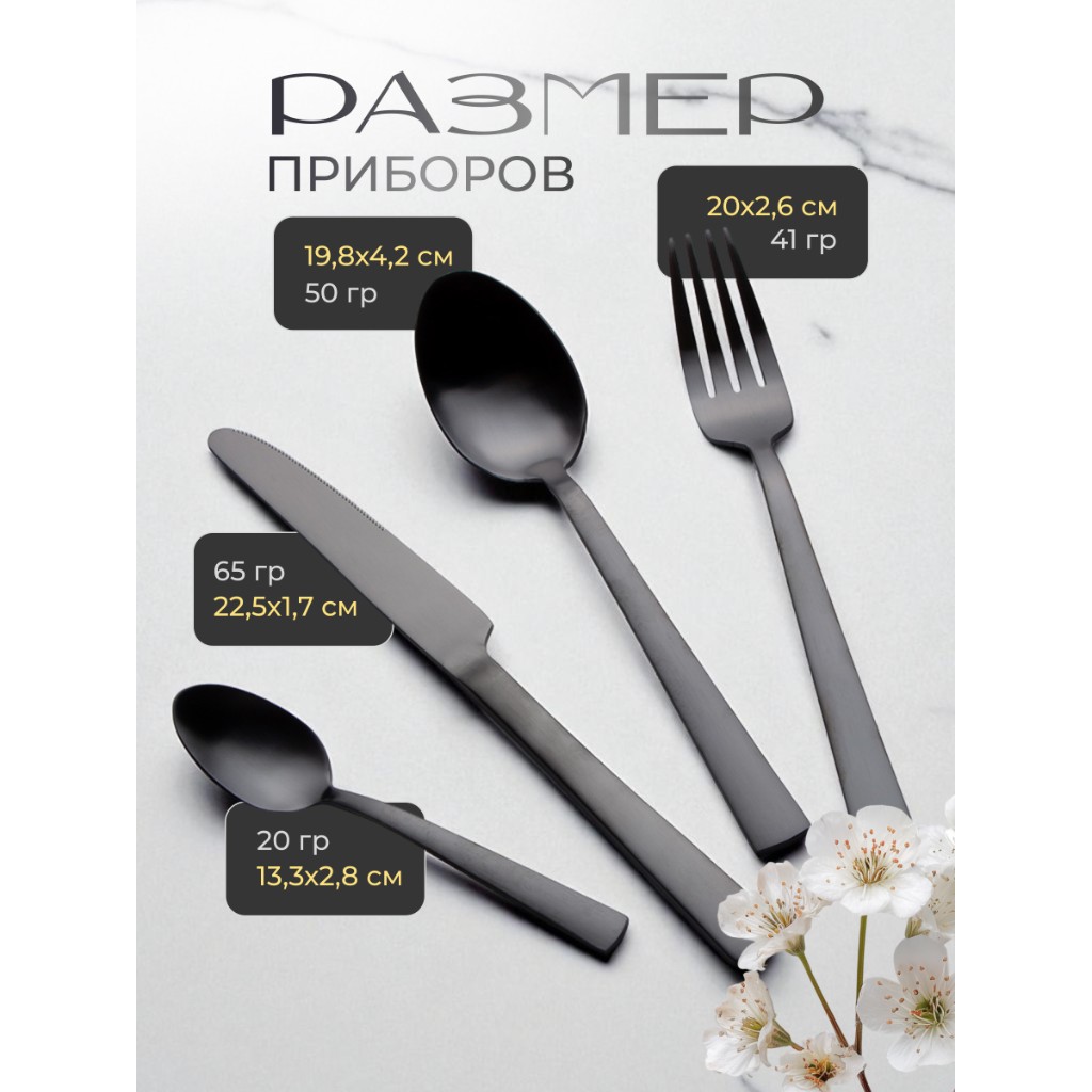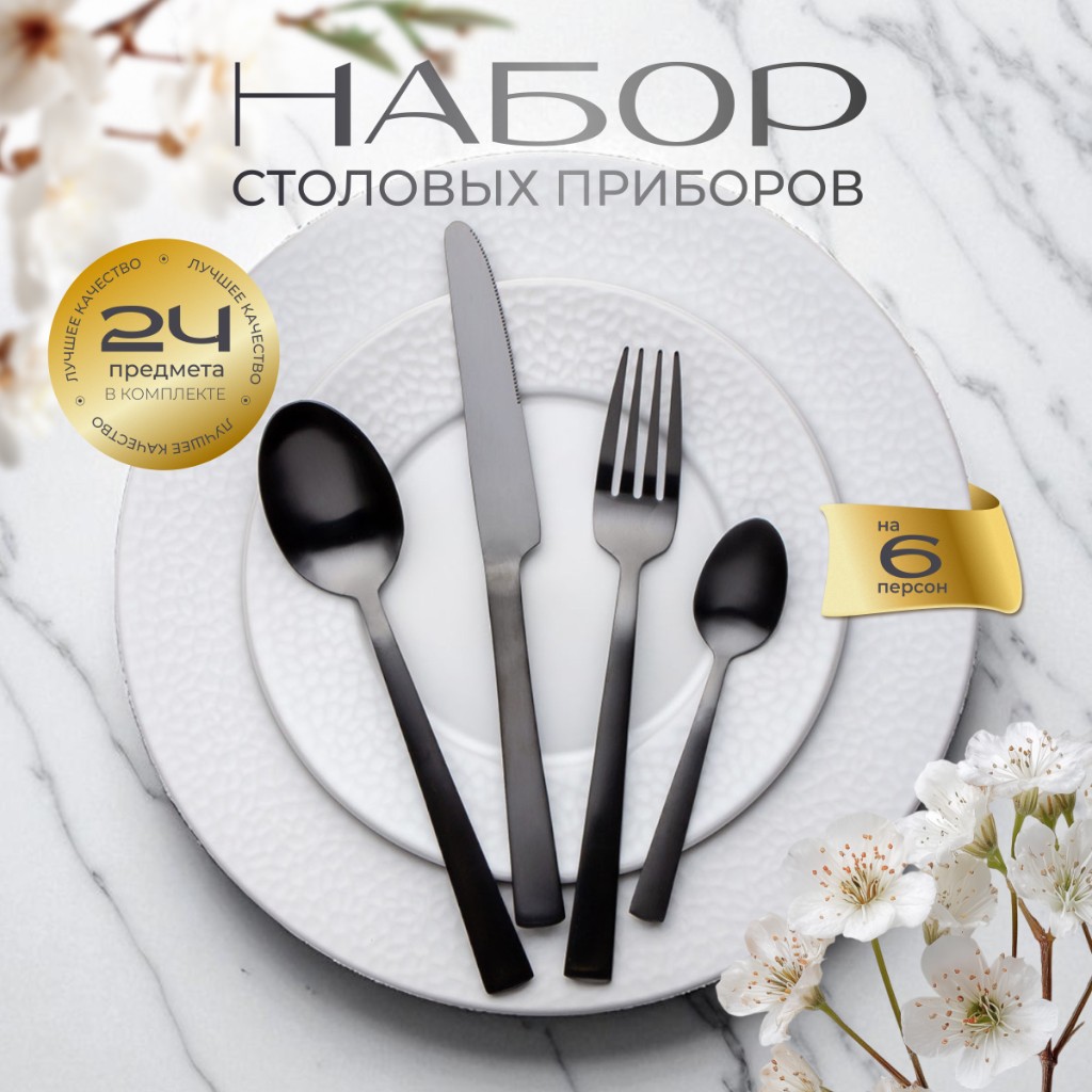 Набор столовых приборов нержавеющая сталь, 24 предмета, черный матовый, Классика, B020126, 6 персон