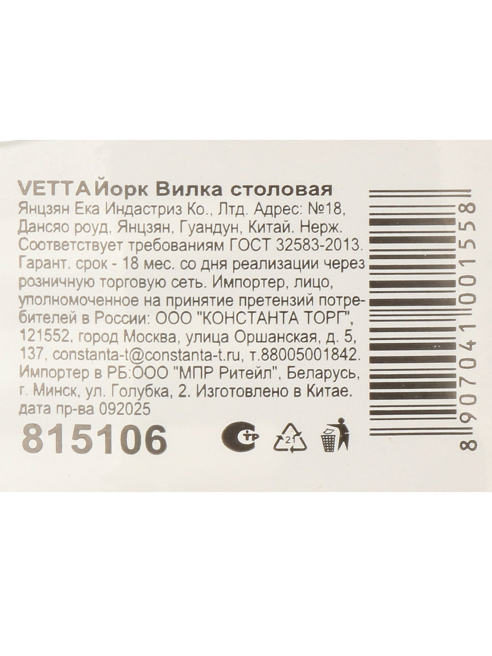Вы можете приобрести «Вилка нержавеющая сталь, столовая, Vetta, Йорк, 815-106, 19.7 см» и другие товары в нашем интернет-магазине в Серпухове по низким ценам и с бесплатным самовывозом.