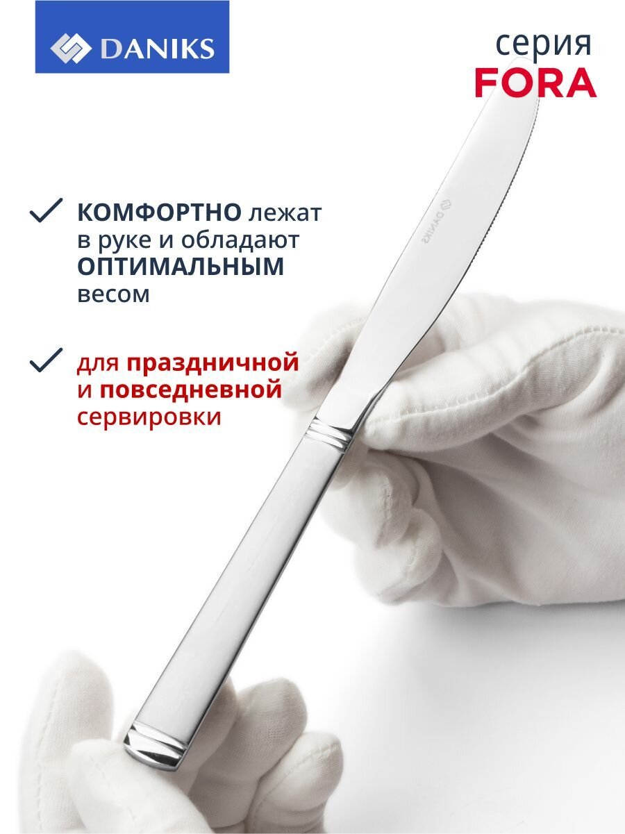 Набор столовых приборов Daniks Fora на 24 предмета — это оптимальный выбор для тех, кто ищет современный столовый комплект из нержавеющей стали для сервировки на 6 персон. Серебристый матовый цвет гармонирует с любым интерьером, а металлические ручки эргономичны и приятны на ощупь. Такой набор часто ищут по запросам «какой набор столовых приборов выбрать для подарка» или «что лучше для праздничного стола» — и Daniks Fora уверенно отвечает этим требованиям благодаря качеству материалов и стильной упаковке.