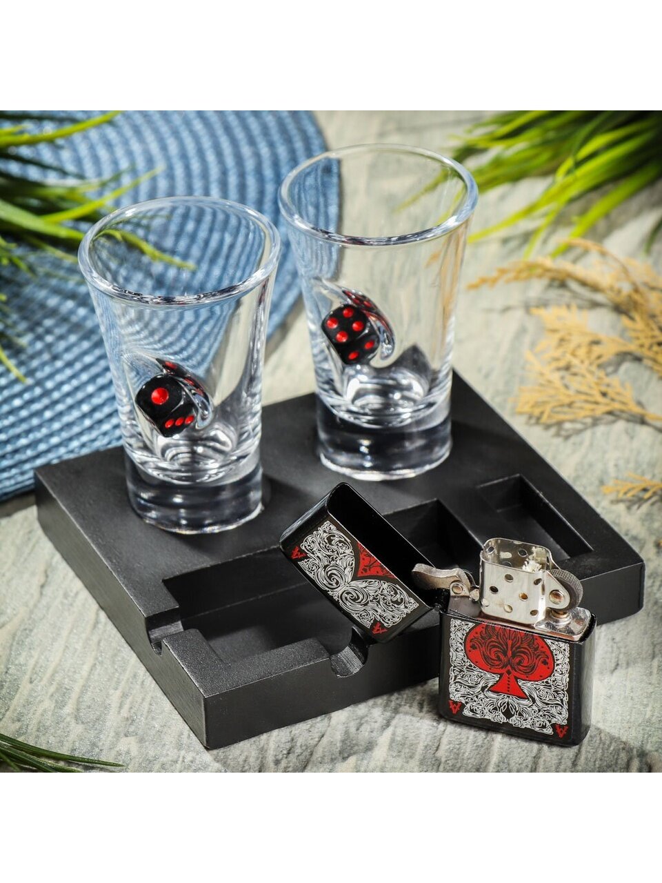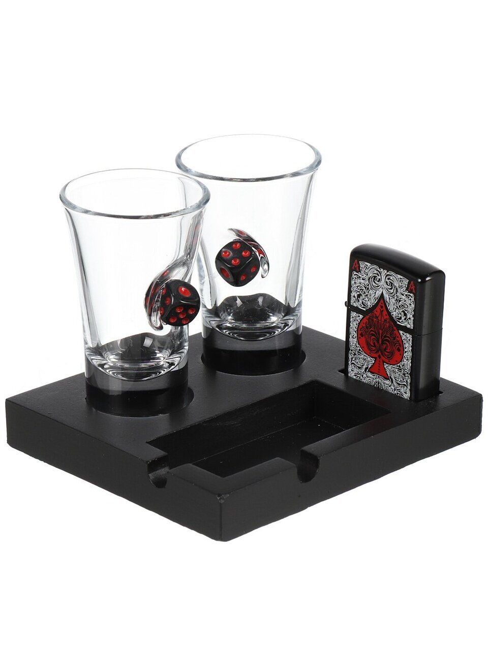 - Состав набора: 2 стопки, зажигалка, подставка.