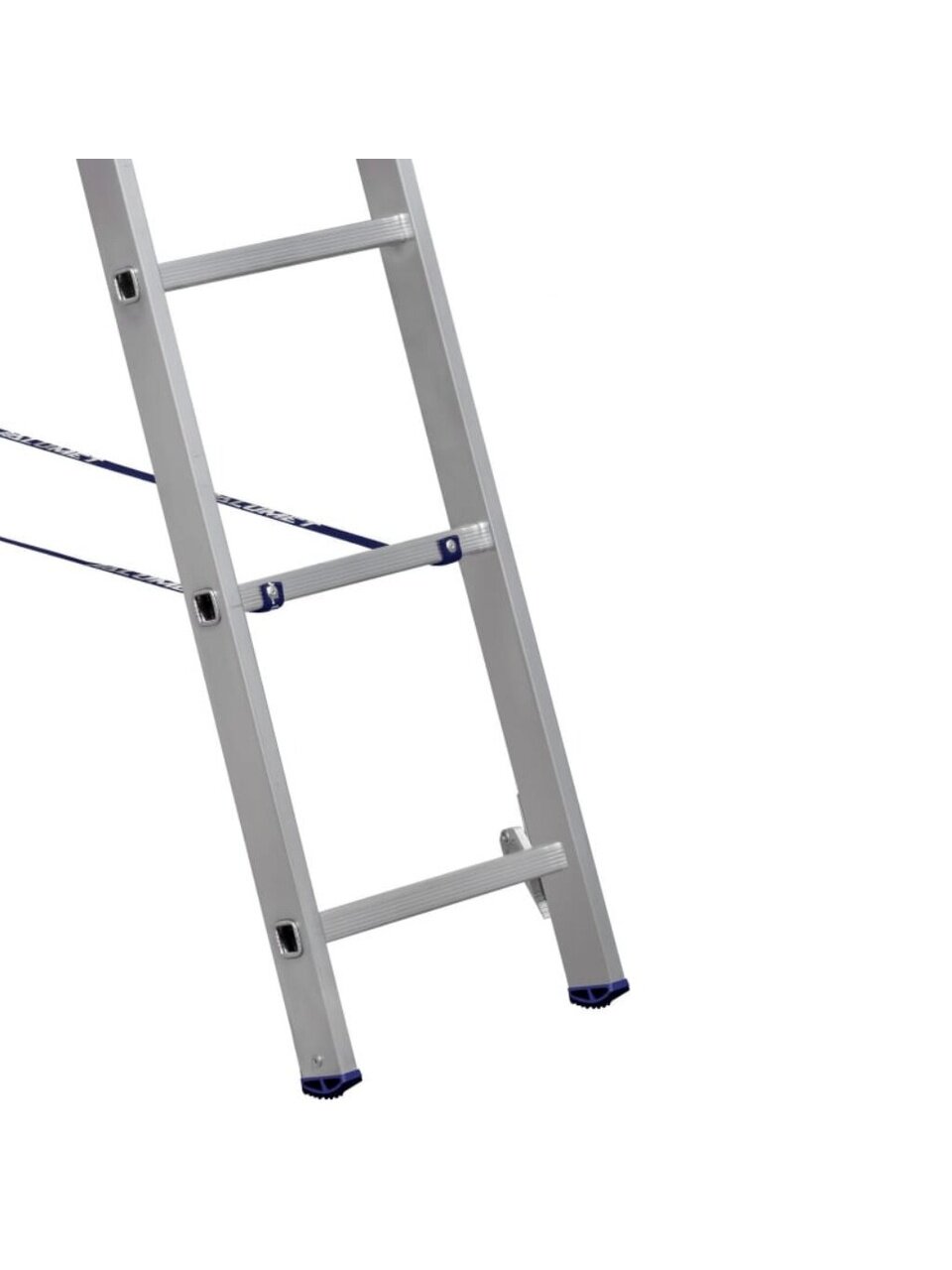 Лестница двухсекционная Алюмет - это универсальная многофункциональная конструкция, предназначенная для бытового или профессионального использования. Универсальность лестницы заключается в том, что она может использоваться как раздвижная приставная лестница и как свободностоящая двухсторонняя стремянка.