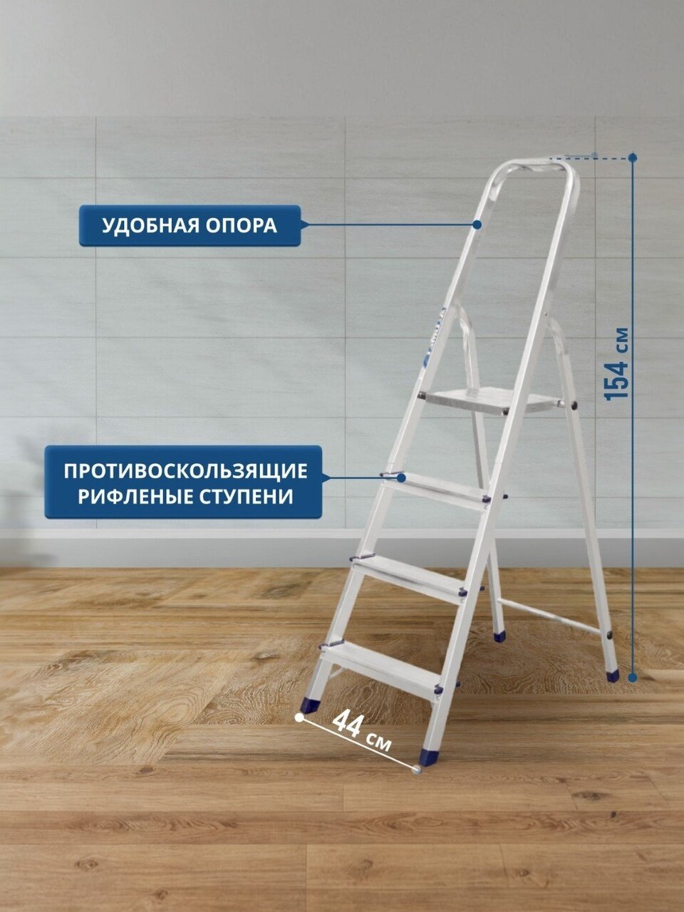 Вы можете приобрести «Стремянка 1 секция, 4 ступени, алюминий, 0.84 м, 150 кг, рифленые ступени, Alumet, AM704» и другие товары в нашем интернет-магазине в Борисоглебске по низким ценам и с бесплатным самовывозом.