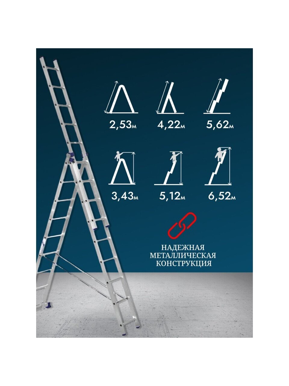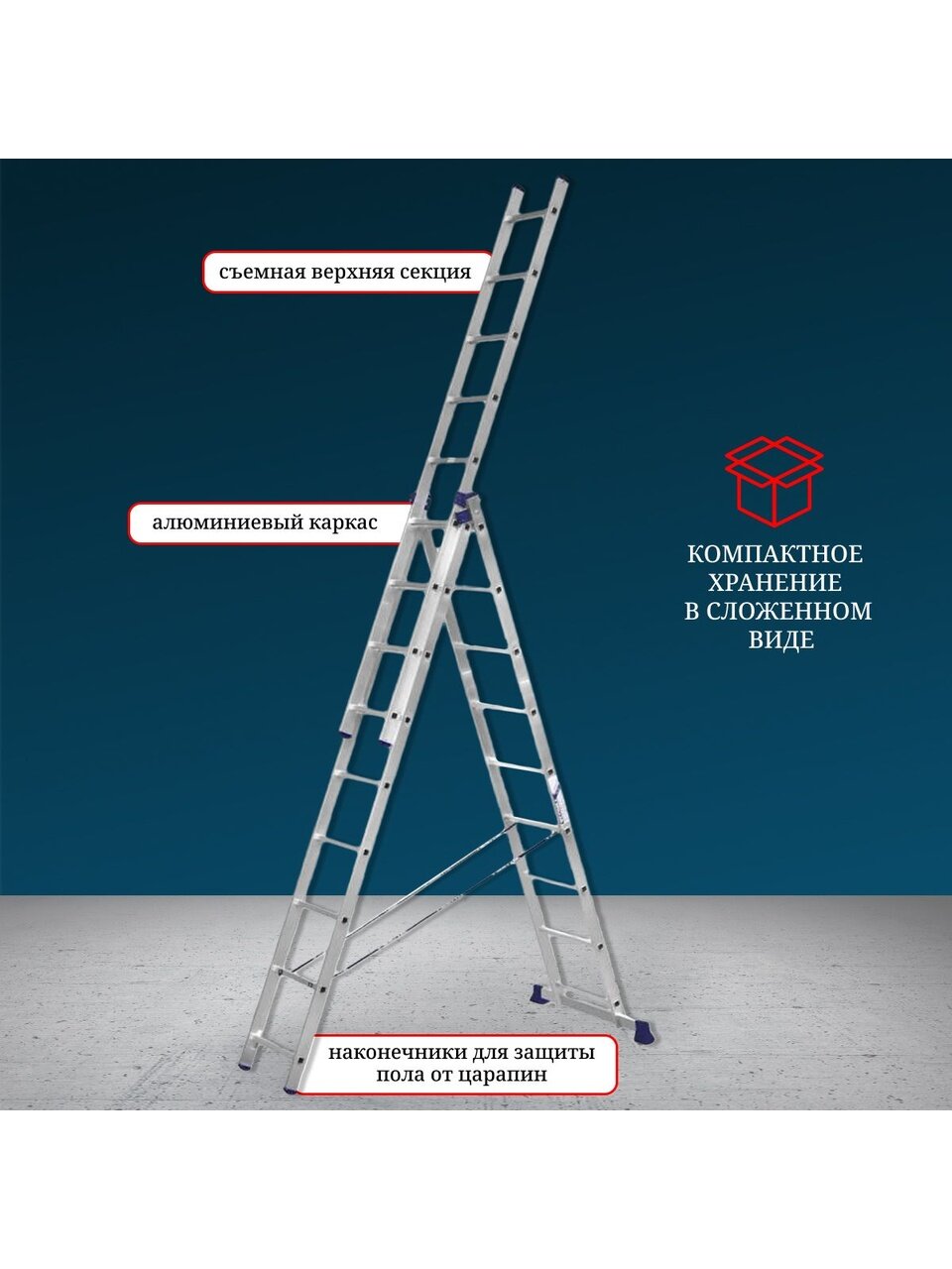 Вы можете приобрести «Лестница 3 секции, 9 ступеней, алюминий, 5.62 м, 150 кг, Alumet, 5309» и другие товары в нашем интернет-магазине в Старом Осколе по низким ценам и с бесплатным самовывозом.