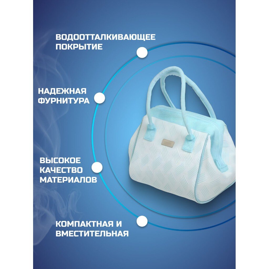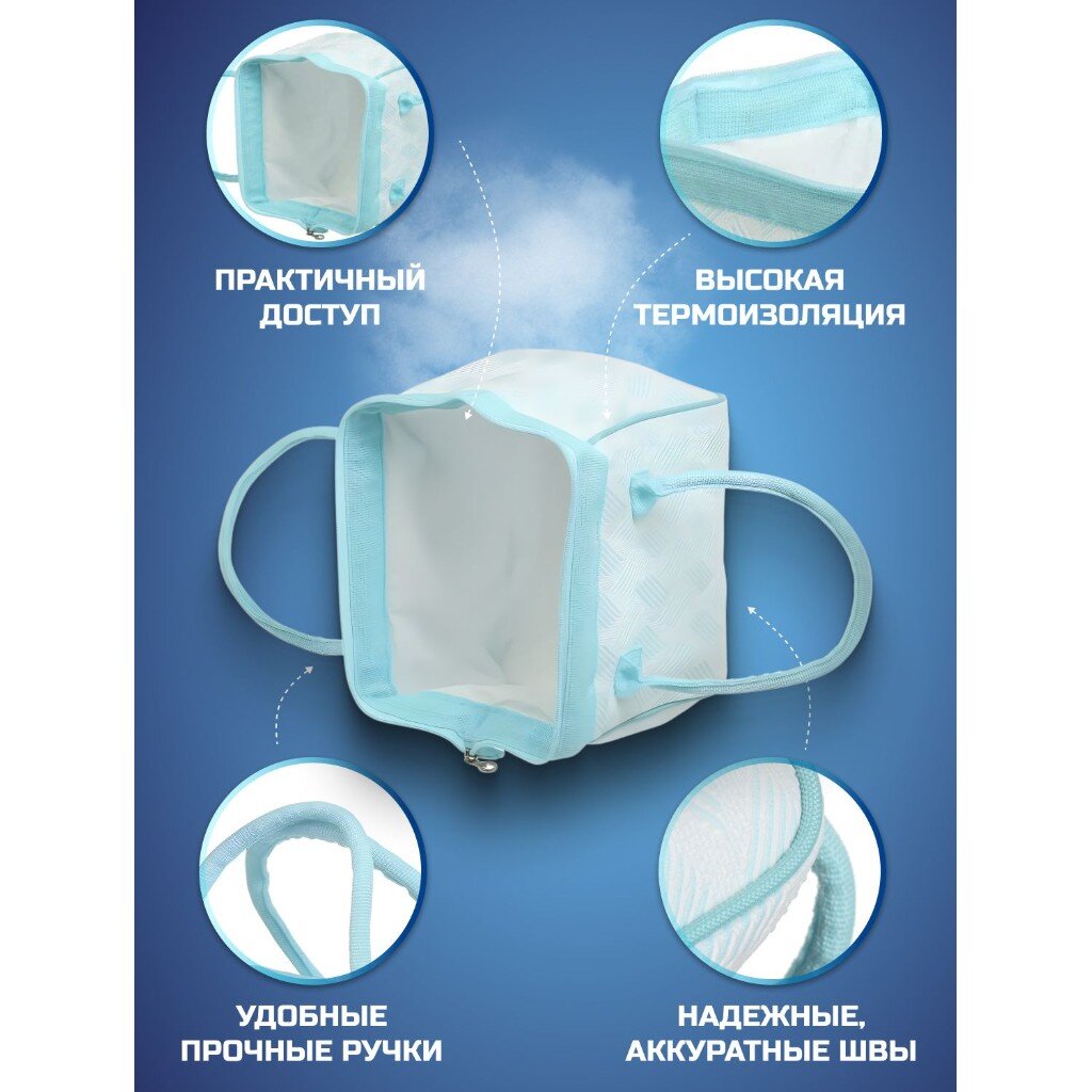 Компактные размеры термосумки — 24×18×19 см — позволяют легко разместить ее в автомобиле или перенести в руках. Удобные ручки для переноски делают транспортировку легкой и комфортной, что особенно важно в условиях активного отдыха. Цветовое решение в голубых тонах придаст вашему образу свежести и легкости, подчеркивая ваш стиль и индивидуальность.