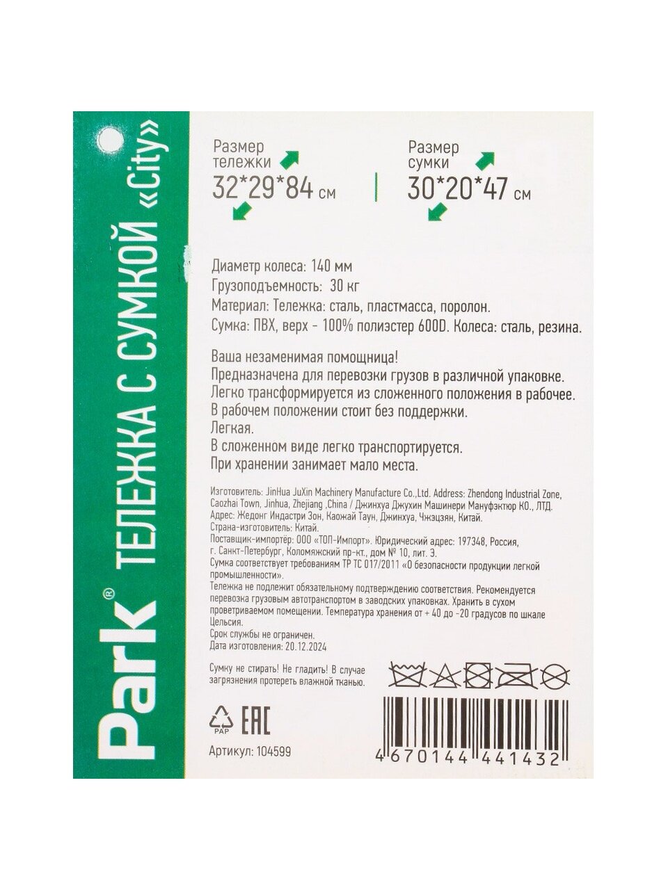 Вы можете приобрести «Тележка складная 32х29х84 см, металл, 100% полиэстер, 30 кг, с сумкой, City, 104599» и другие товары в нашем интернет-магазине в Россоши по низким ценам и с бесплатным самовывозом.