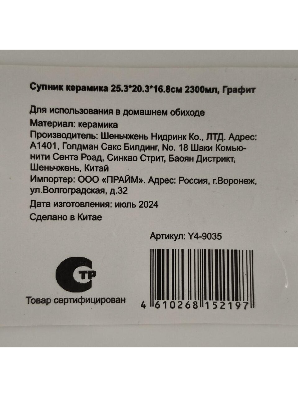 Вы можете приобрести «Супник керамика, 2.3 л, 25.3х20.3х16.8 см, Графит, Y4-9035» и другие товары в нашем интернет-магазине в Серпухове по низким ценам и с бесплатным самовывозом.