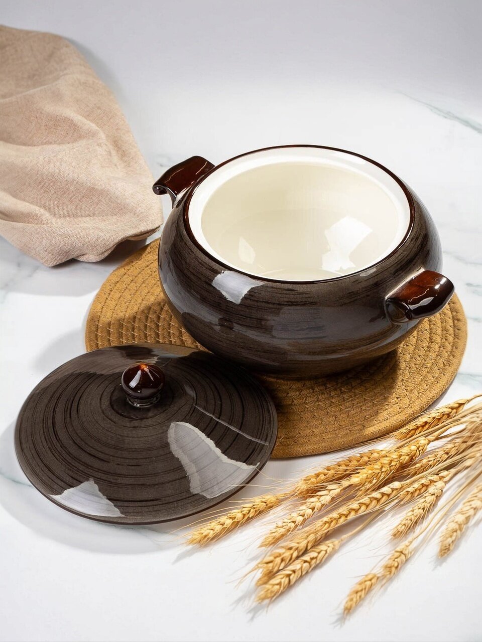 Супник выполнен из высококачественной керамики, что гарантирует долговечность и надежность в использовании. Объем 2.3 литра позволяет готовить и сервировать как небольшие порции, так и полноценные блюда для всей семьи. Благодаря своим размерам 25.3х20.3х16.8 см, супник удобно хранить в кухонных шкафах, и он не займет много места на полке.